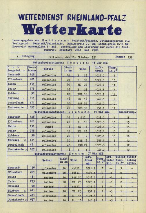 Wetterkarte des Wetterdienstes Rheinland-Pfalz