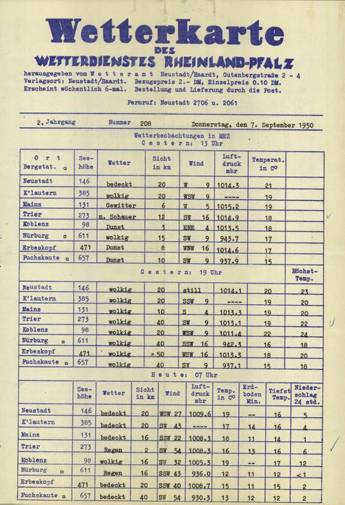 Wetterkarte des Wetterdienstes Rheinland-Pfalz