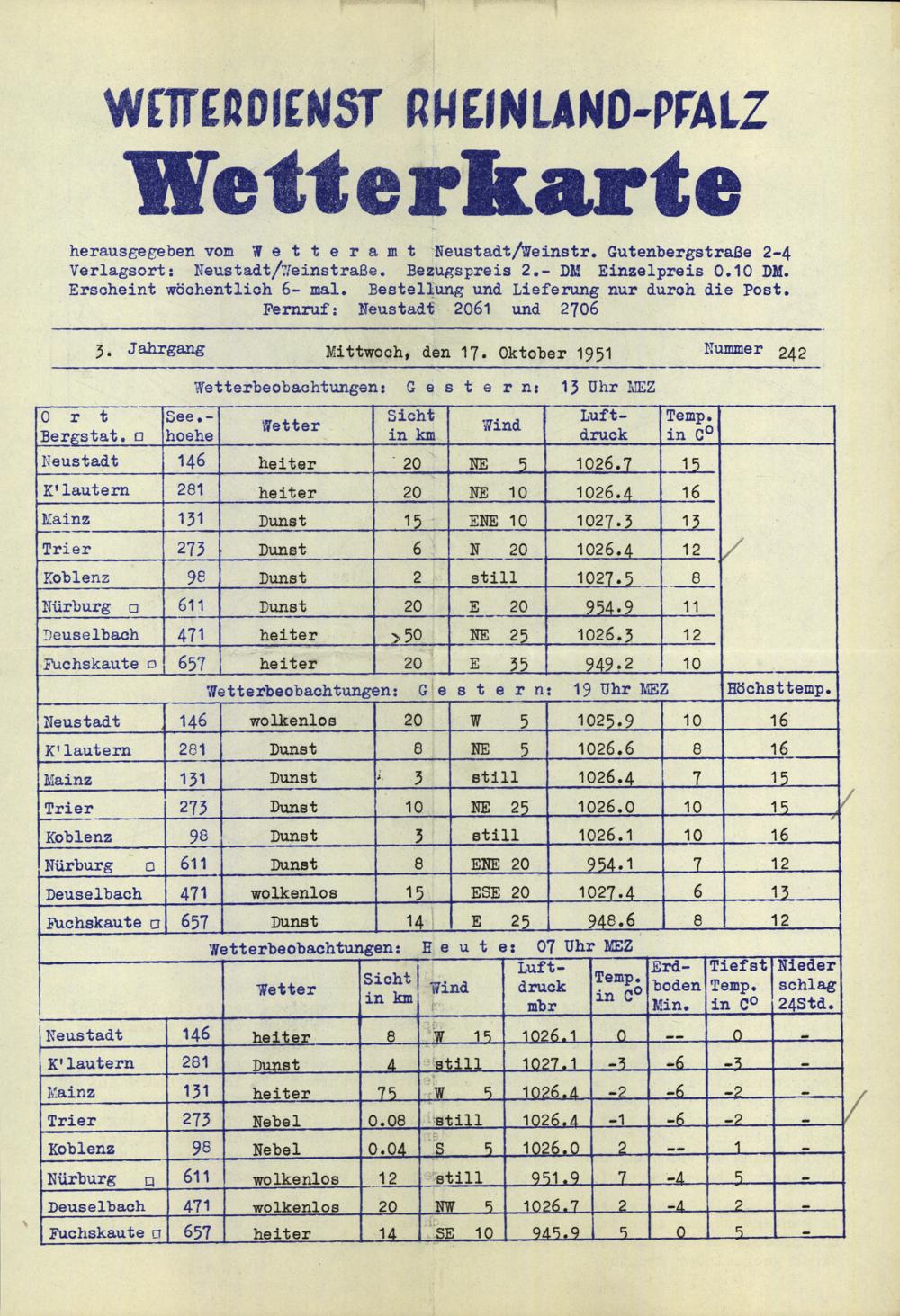 Wetterkarte des Wetterdienstes Rheinland-Pfalz