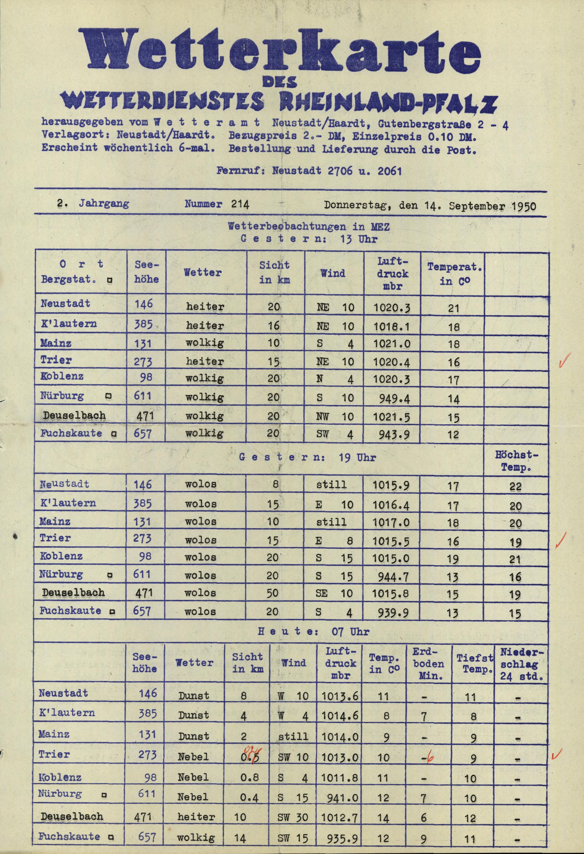Wetterkarte des Wetterdienstes Rheinland-Pfalz