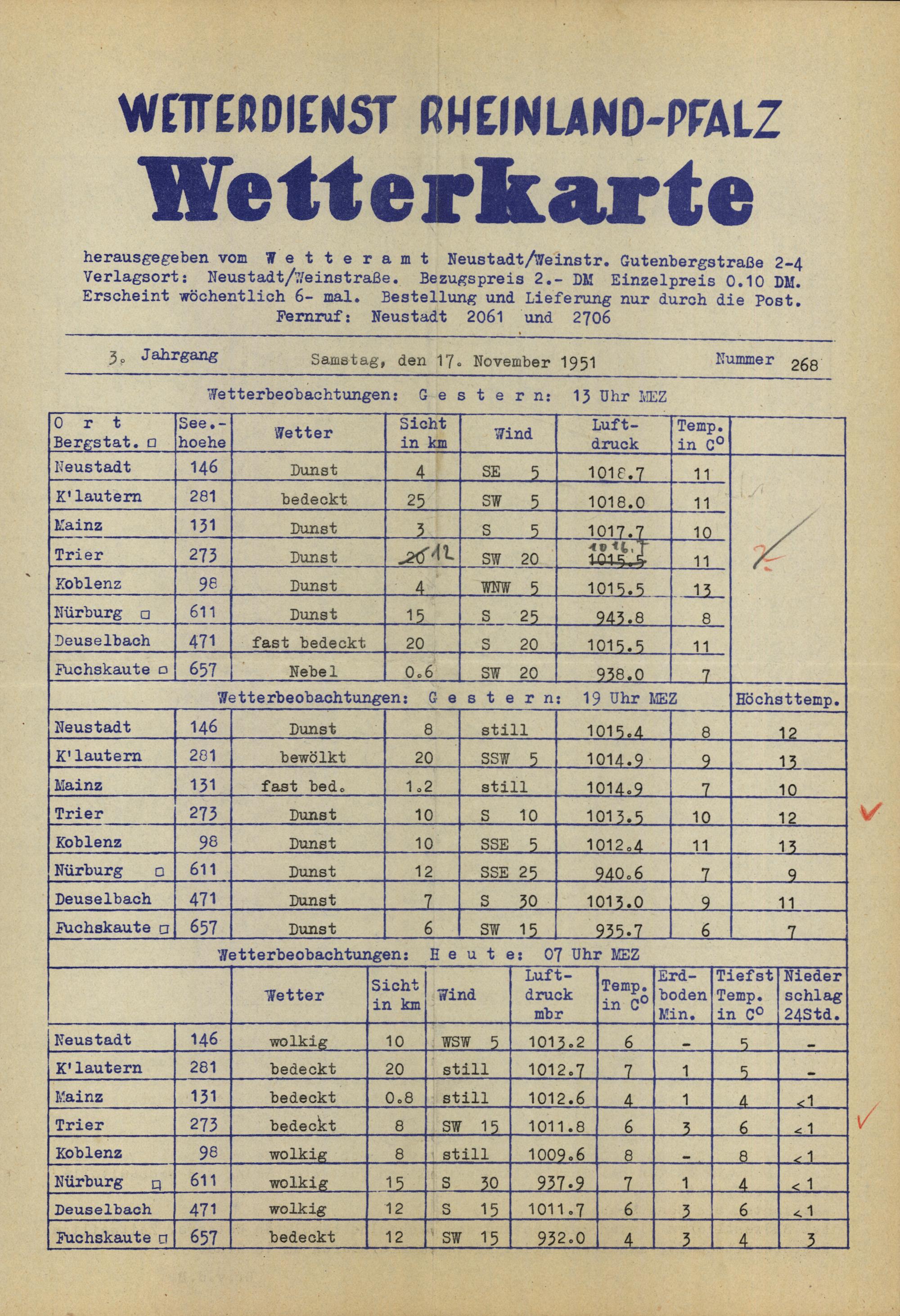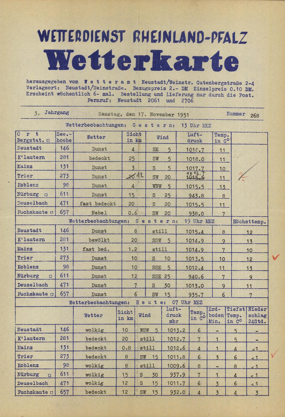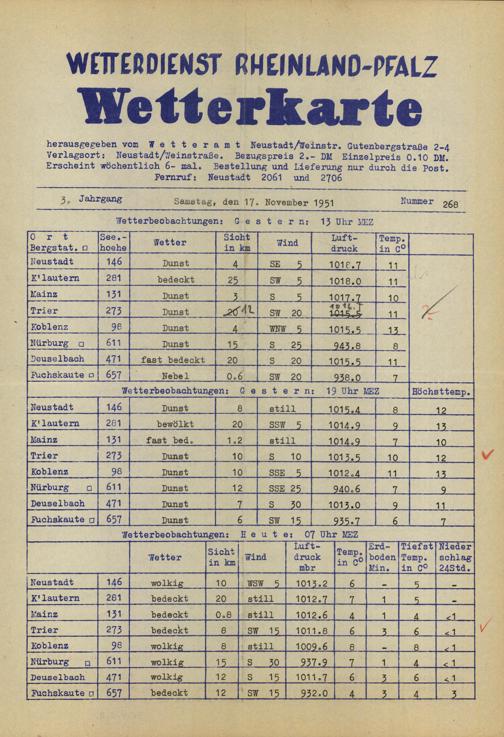 Wetterkarte des Wetterdienstes Rheinland-Pfalz