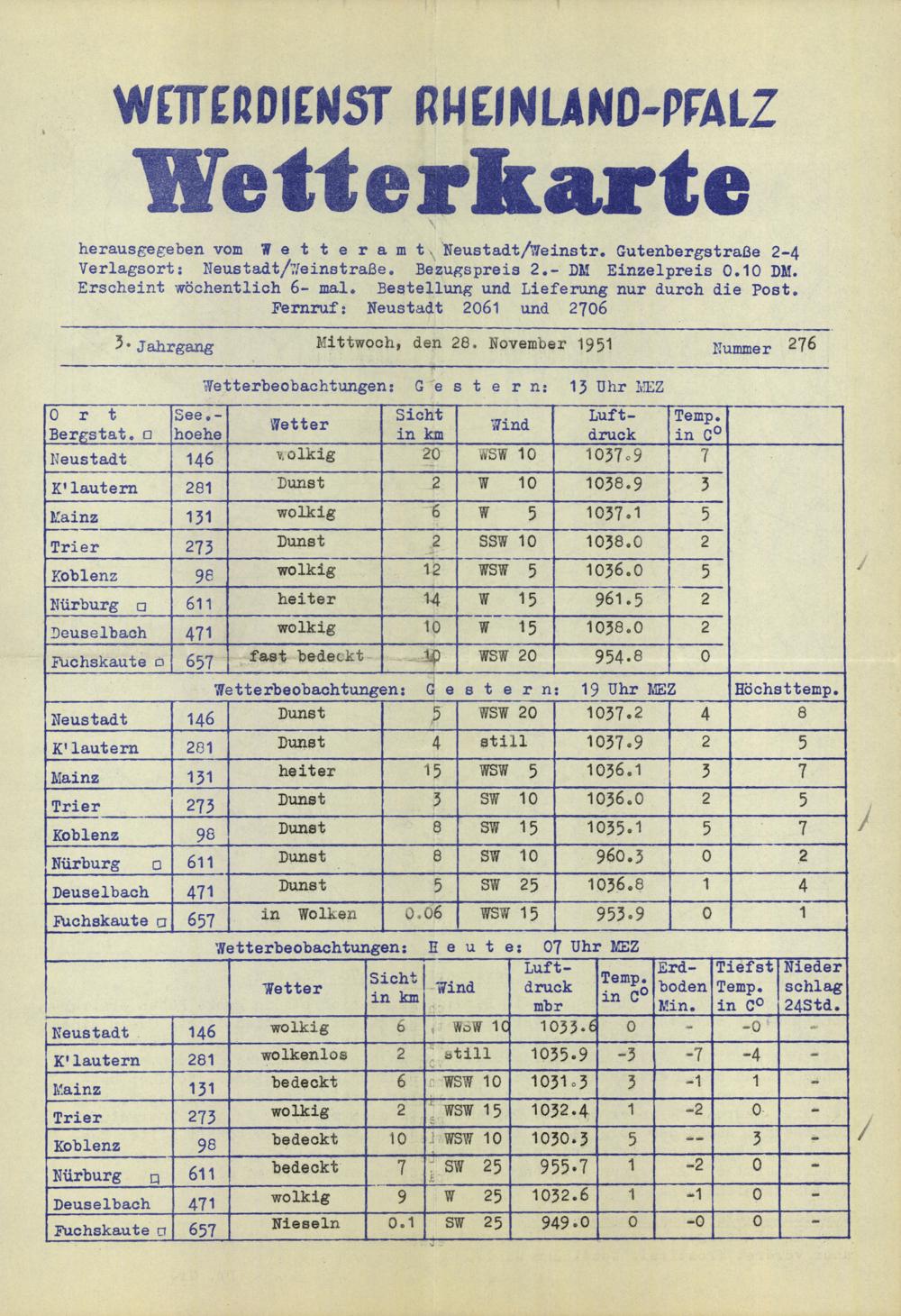 Wetterkarte des Wetterdienstes Rheinland-Pfalz