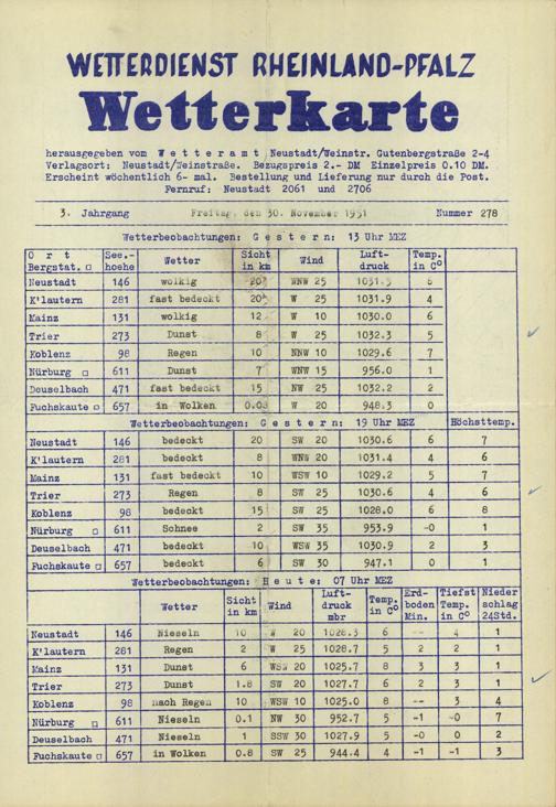 Wetterkarte des Wetterdienstes Rheinland-Pfalz