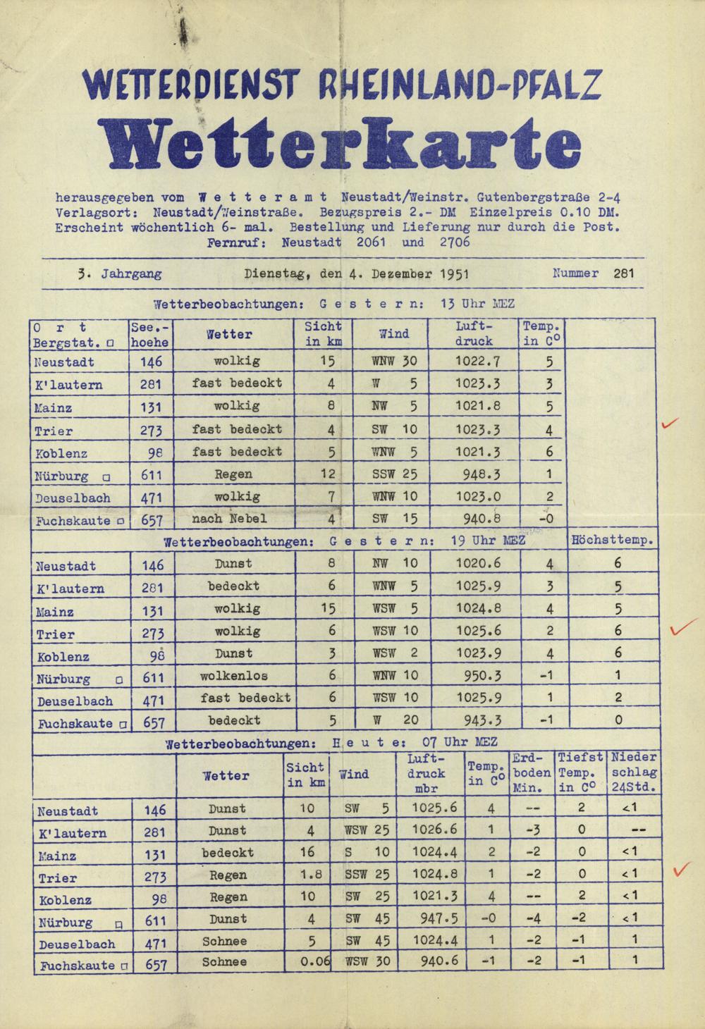 Wetterkarte des Wetterdienstes Rheinland-Pfalz