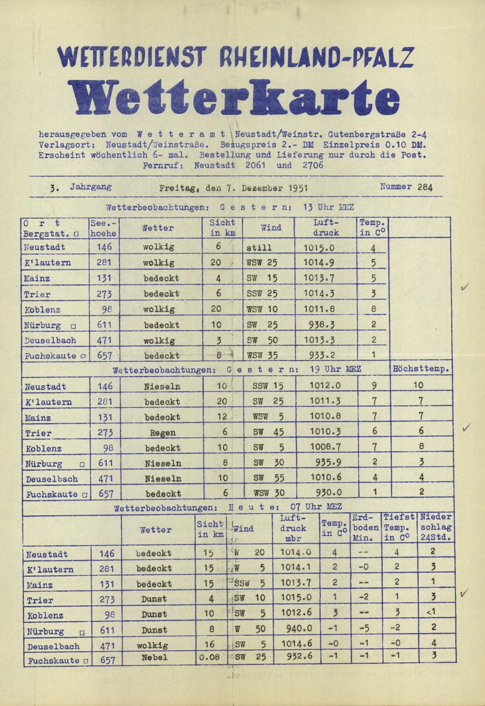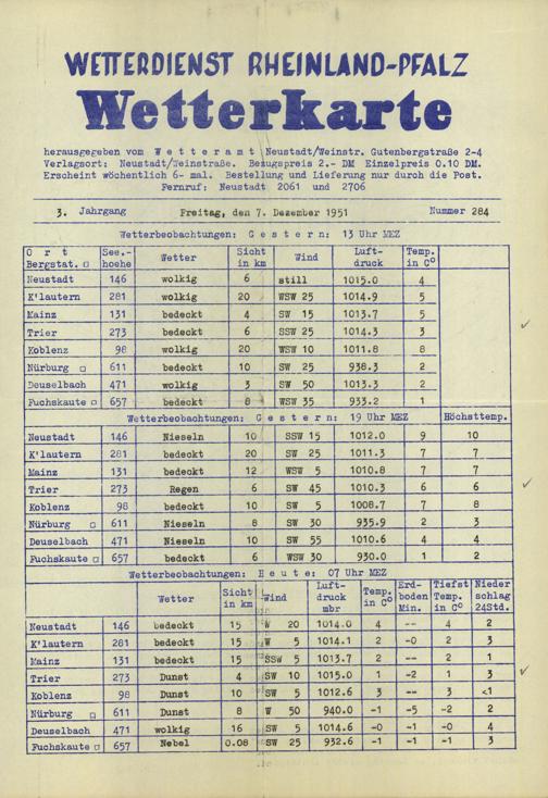 Wetterkarte des Wetterdienstes Rheinland-Pfalz