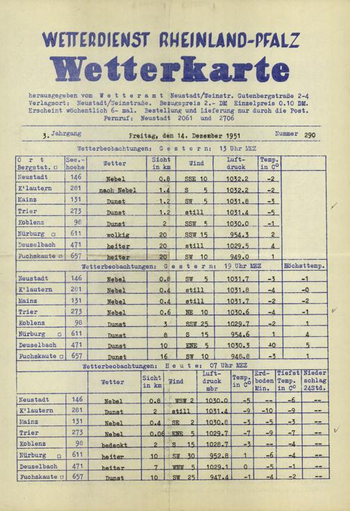 Wetterkarte des Wetterdienstes Rheinland-Pfalz