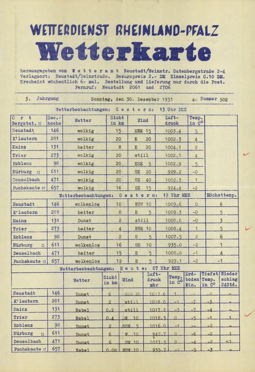 Wetterkarte des Wetterdienstes Rheinland-Pfalz