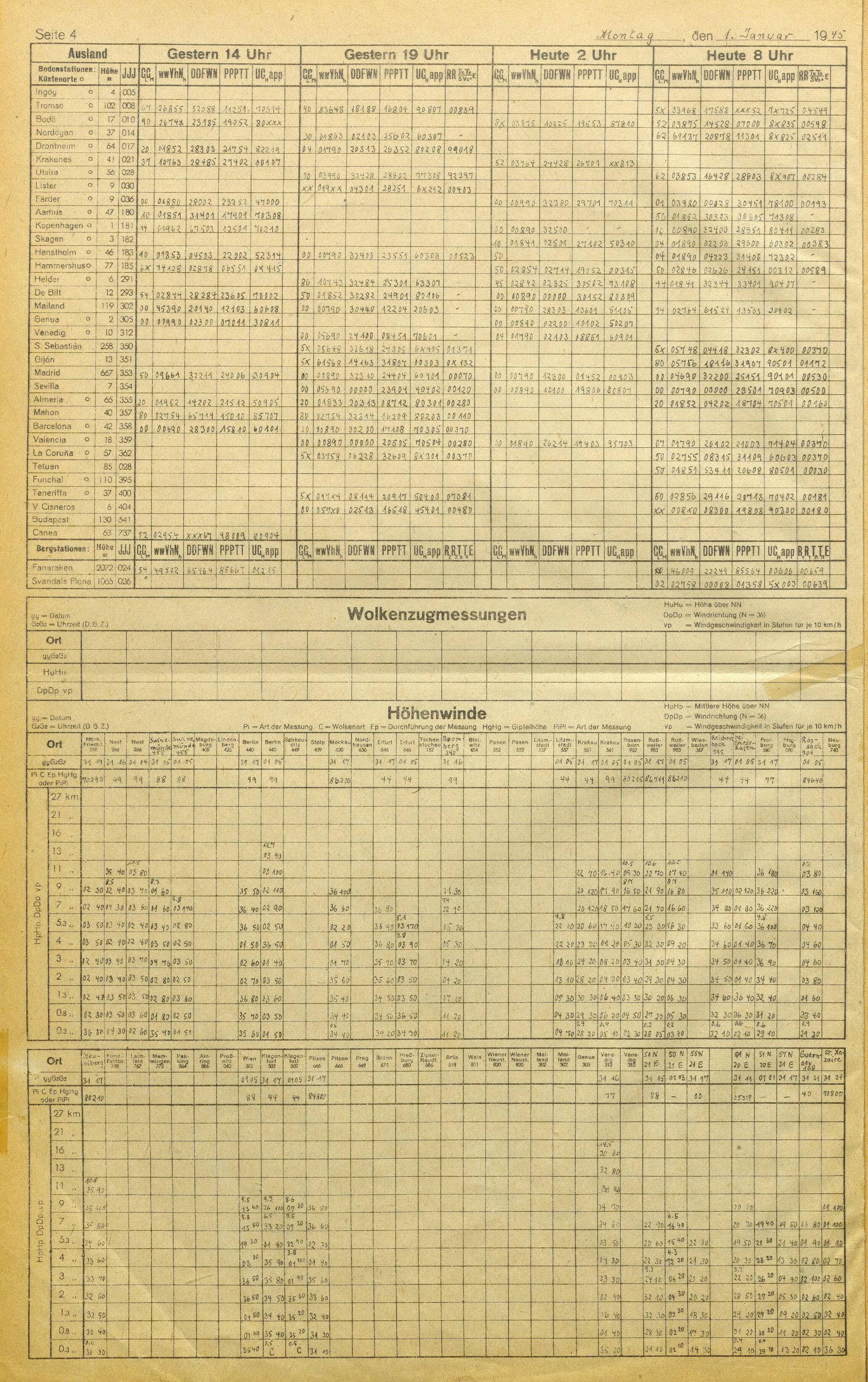 Täglicher Wetterbericht des deutschen Reichswetterdienstes