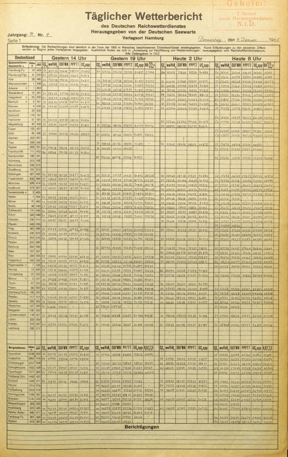 Täglicher Wetterbericht des deutschen Reichswetterdienstes
