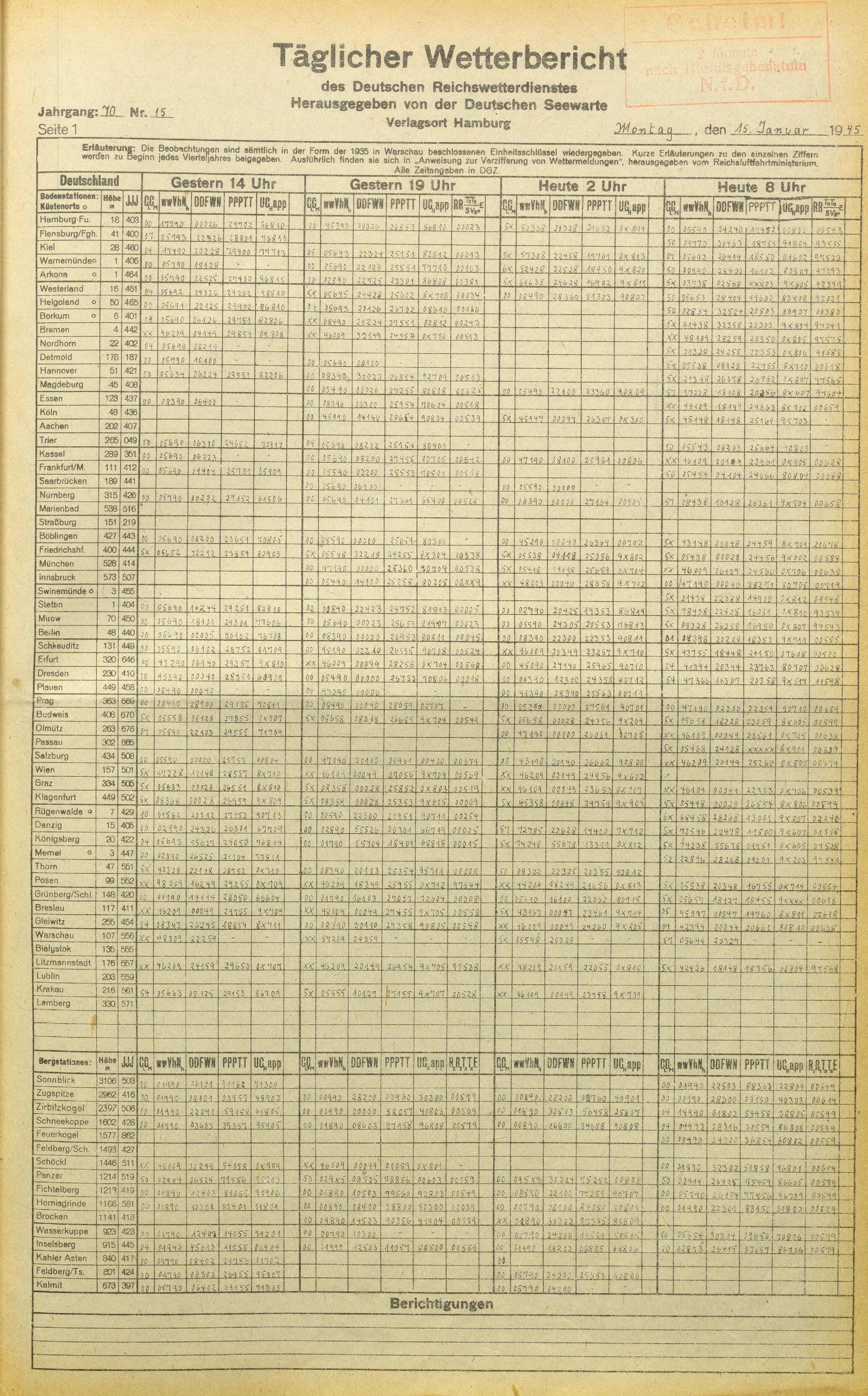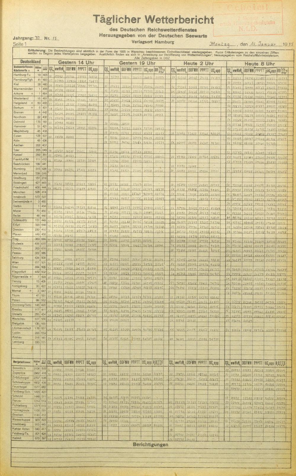 Täglicher Wetterbericht des deutschen Reichswetterdienstes