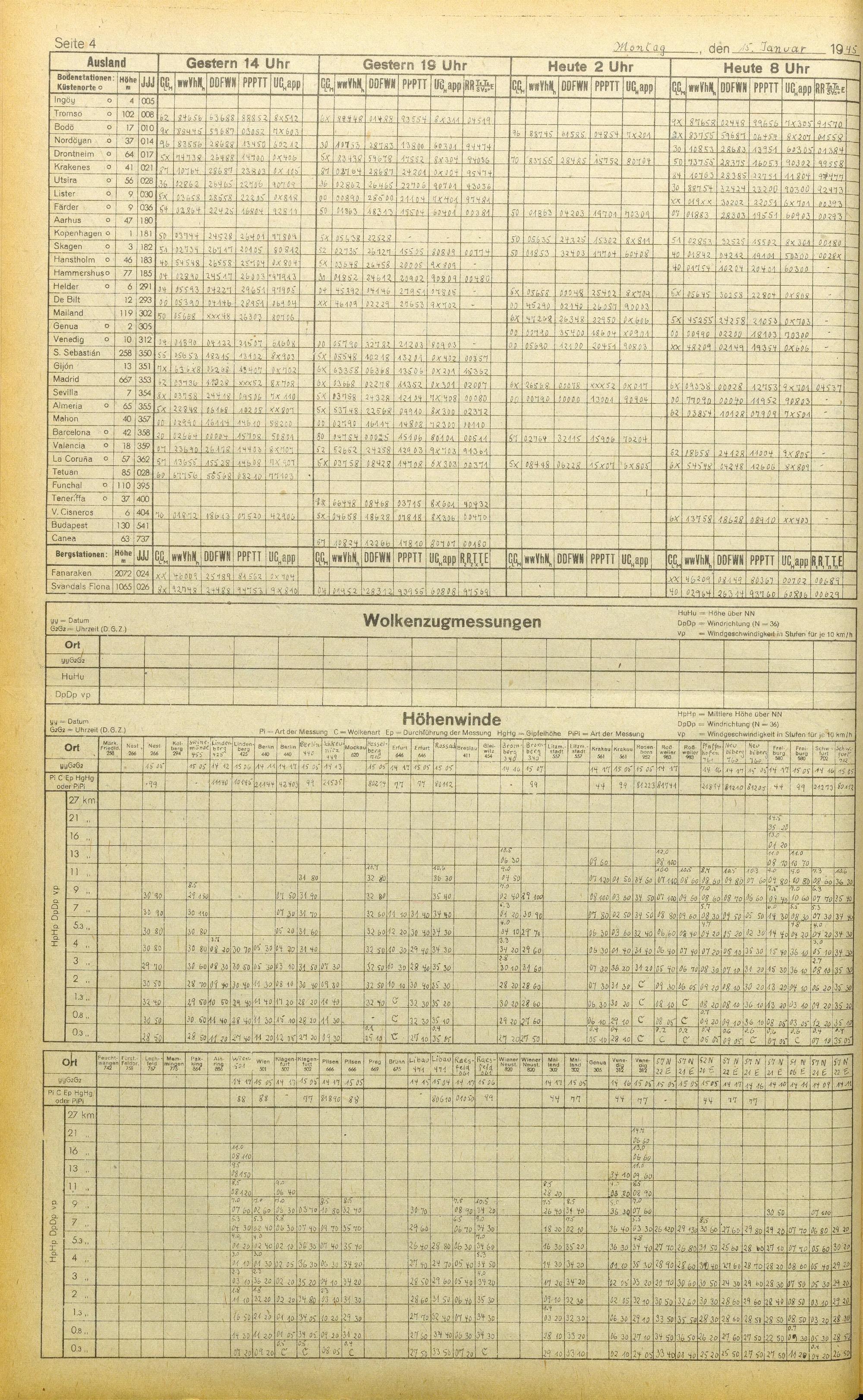 Täglicher Wetterbericht des deutschen Reichswetterdienstes