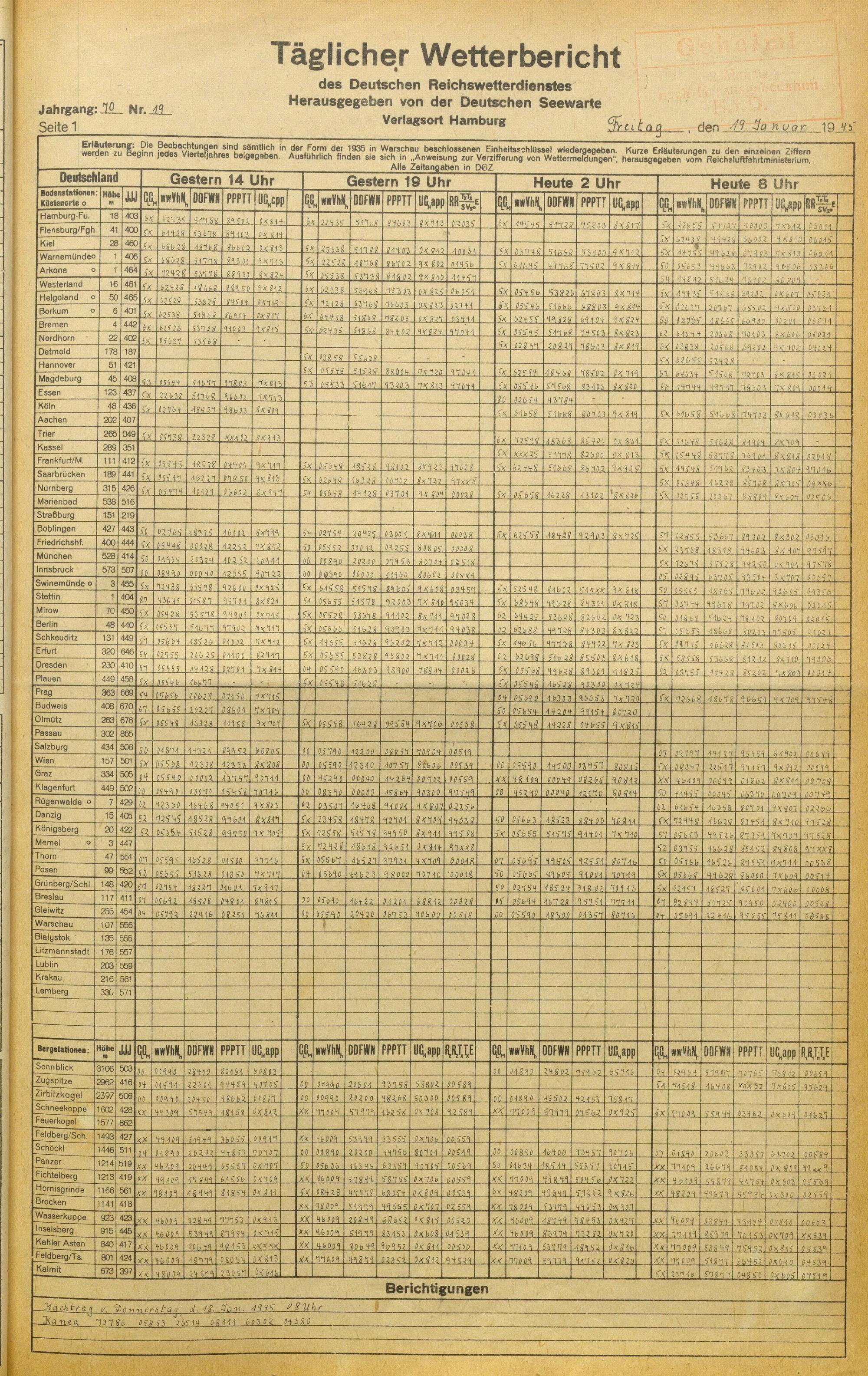 Täglicher Wetterbericht des deutschen Reichswetterdienstes