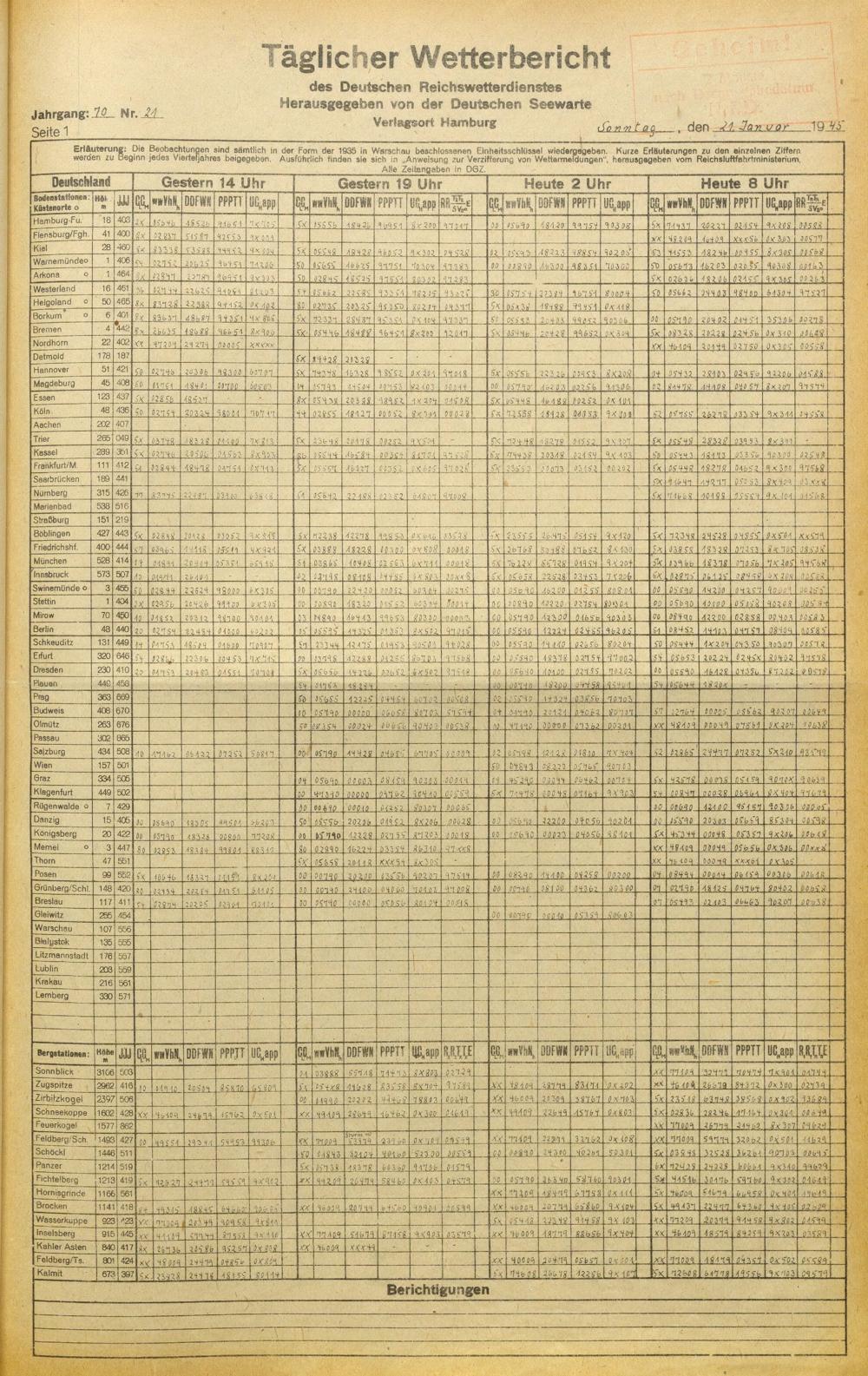Täglicher Wetterbericht des deutschen Reichswetterdienstes