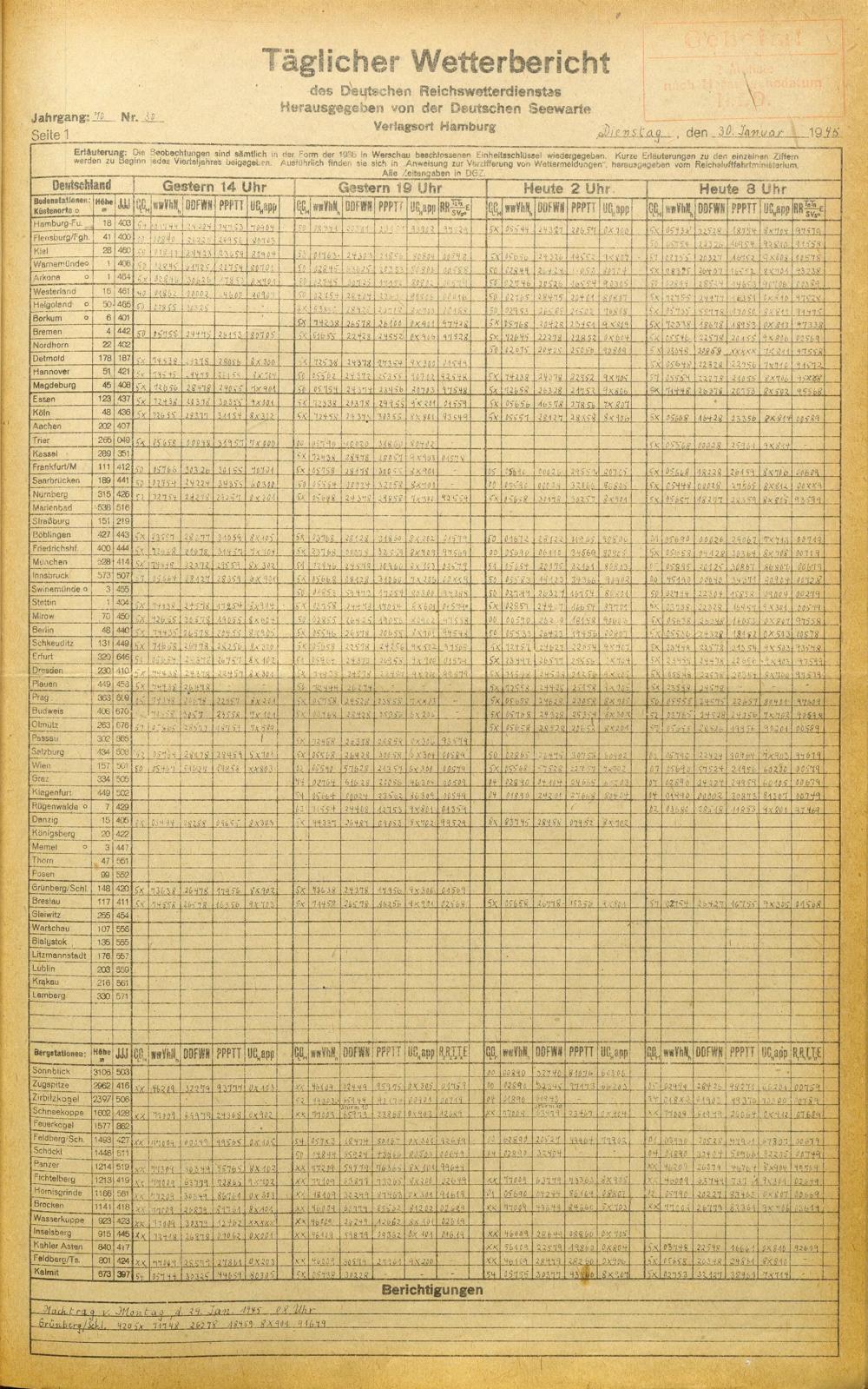 Täglicher Wetterbericht des deutschen Reichswetterdienstes