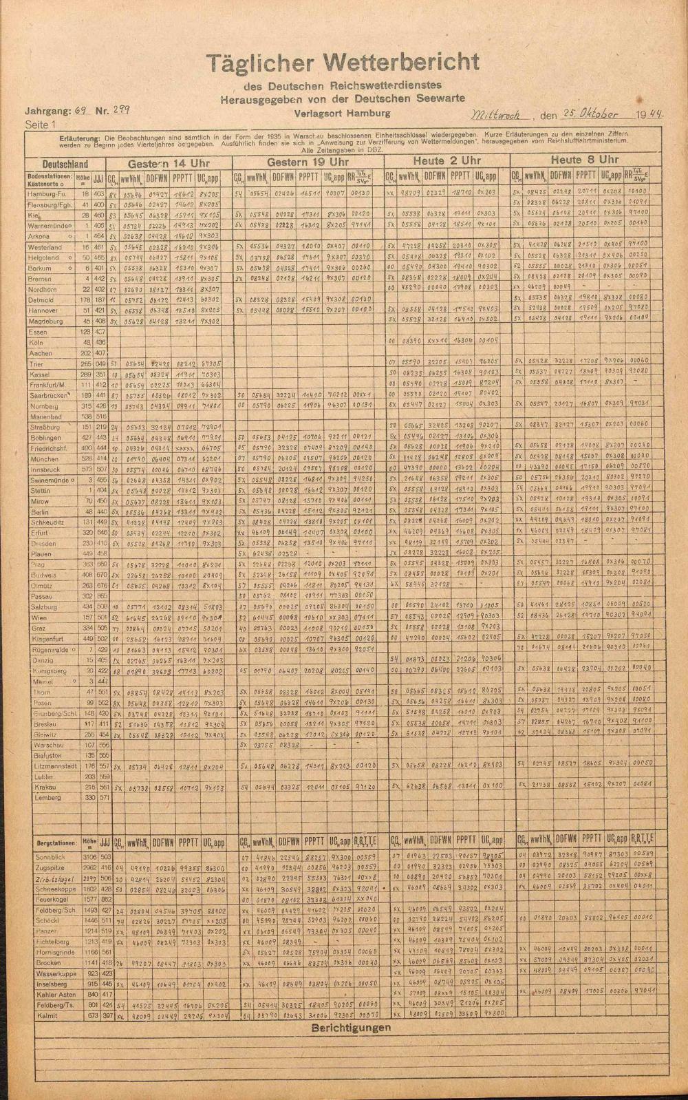 Täglicher Wetterbericht des deutschen Reichswetterdienstes