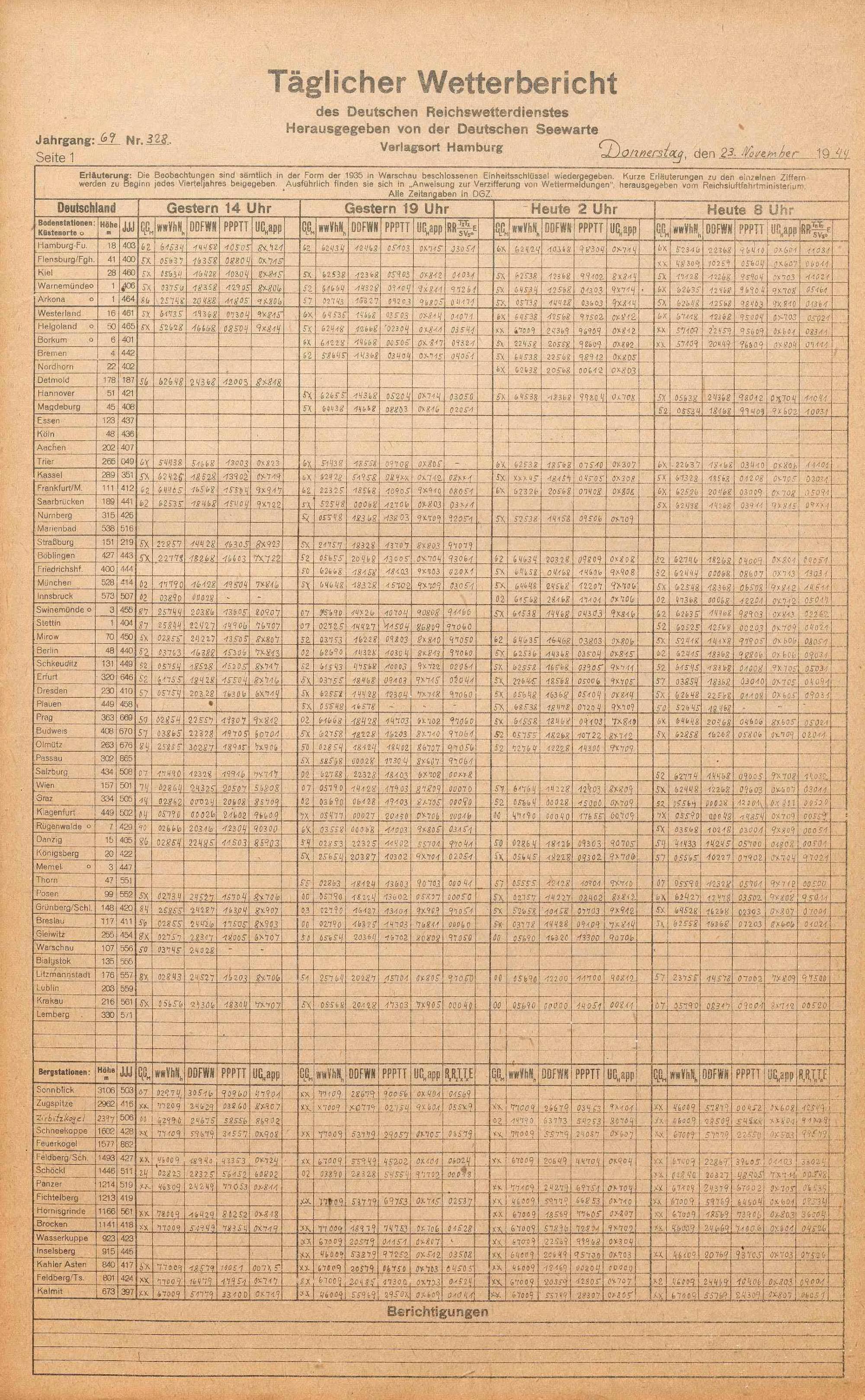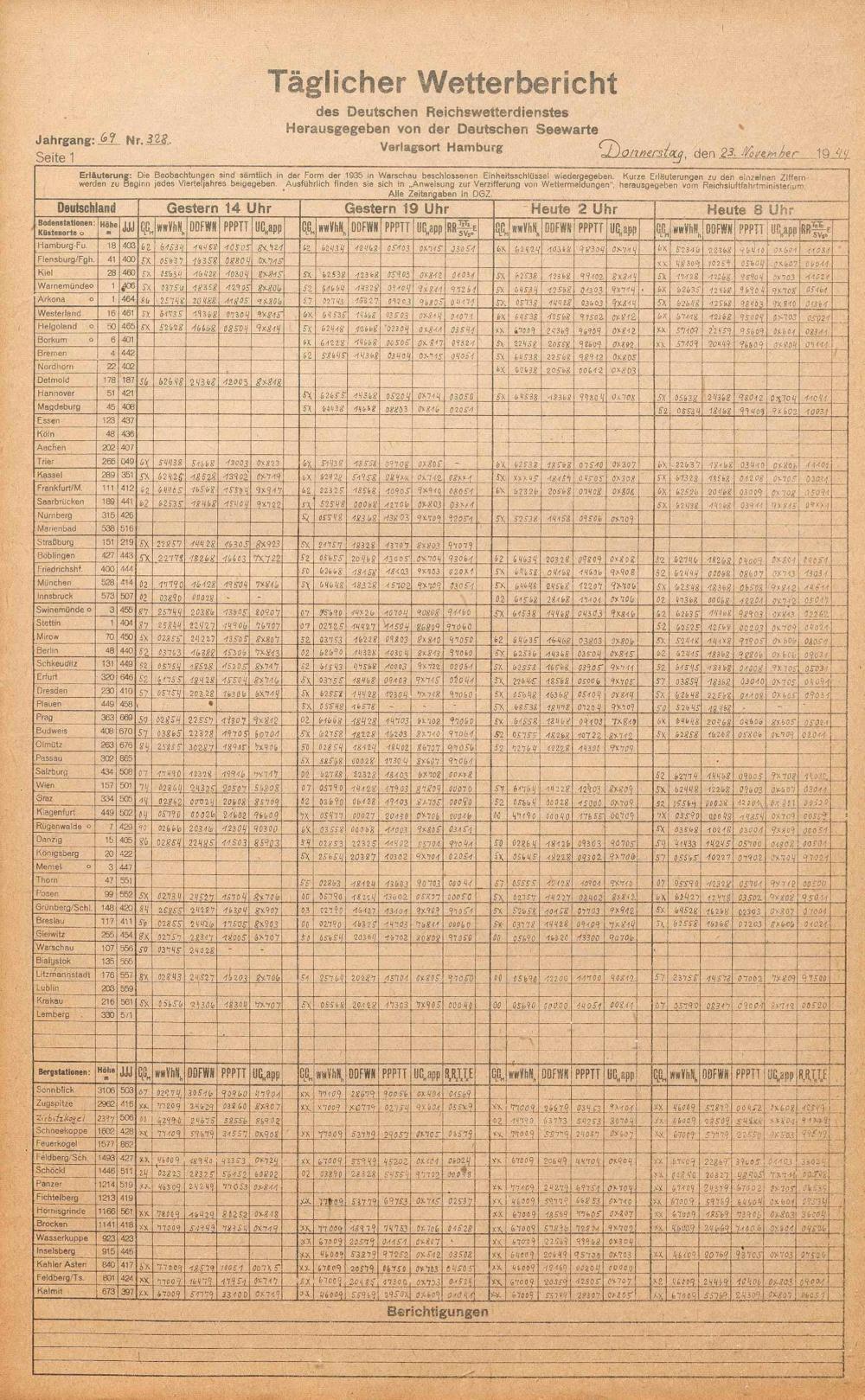 Täglicher Wetterbericht des deutschen Reichswetterdienstes