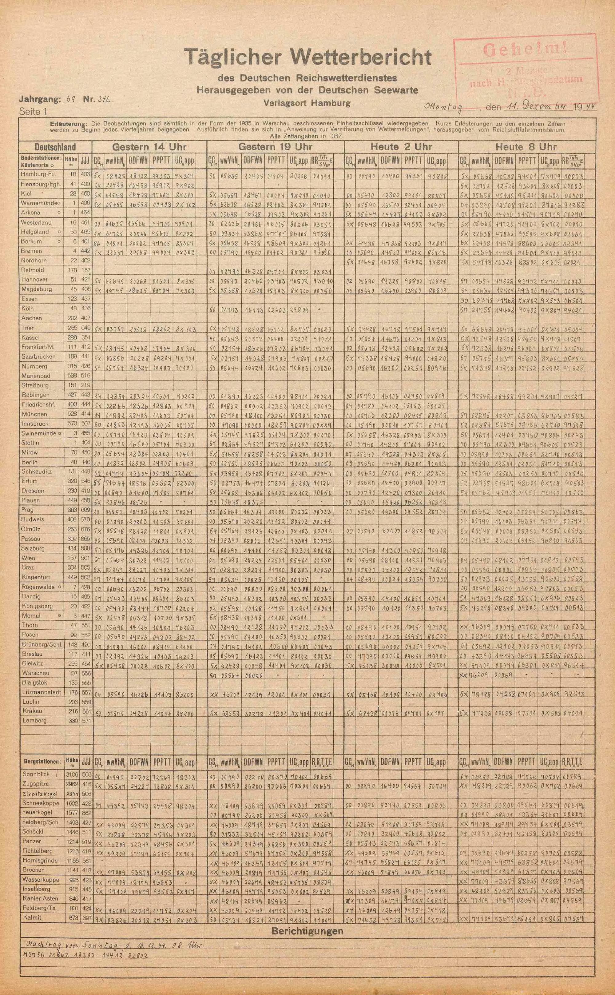 Täglicher Wetterbericht des deutschen Reichswetterdienstes