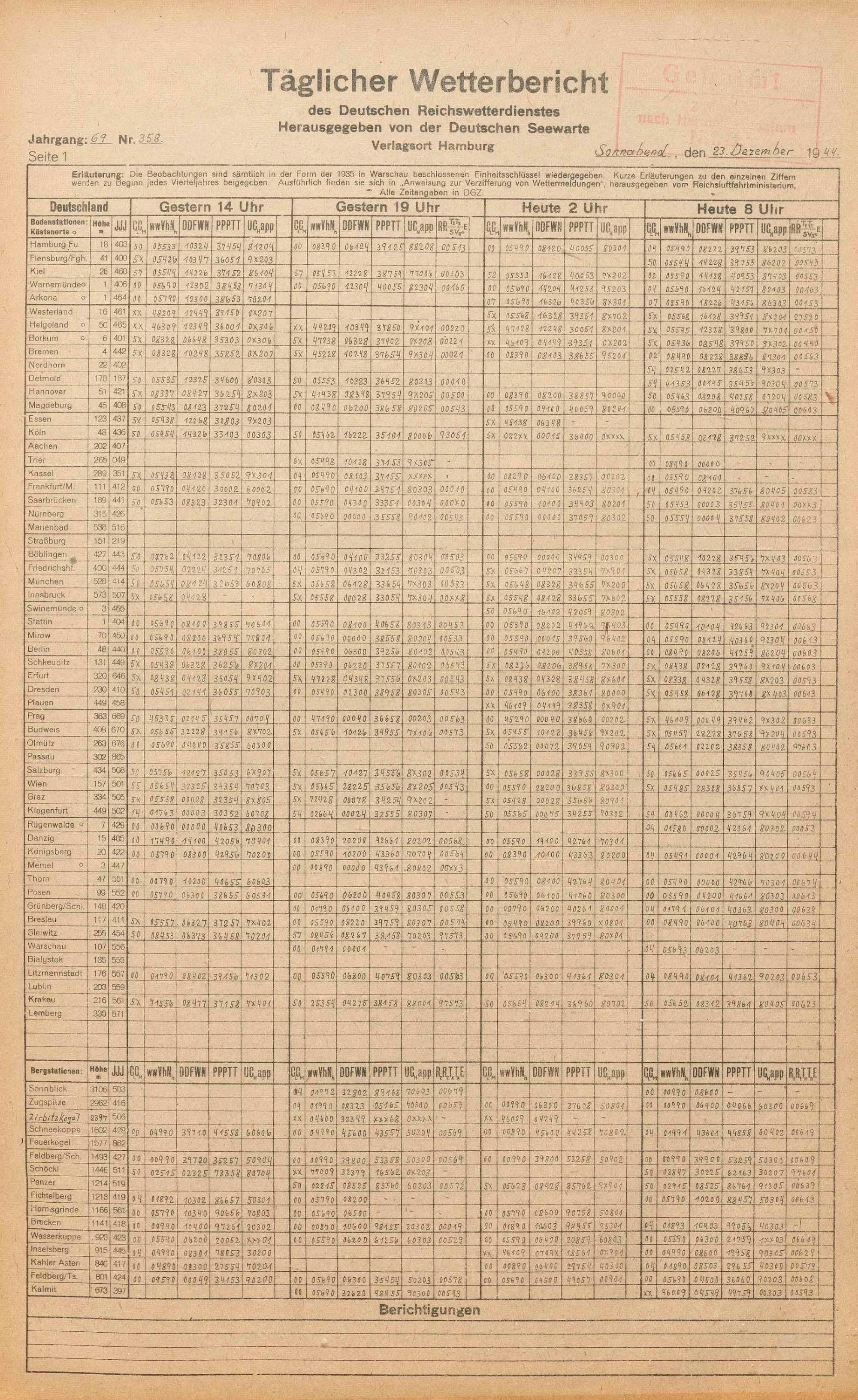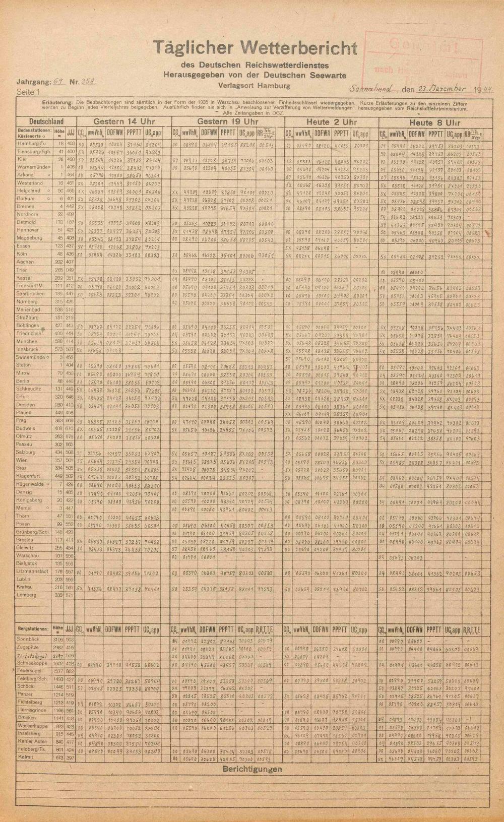Täglicher Wetterbericht des deutschen Reichswetterdienstes