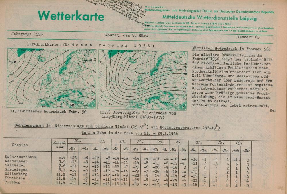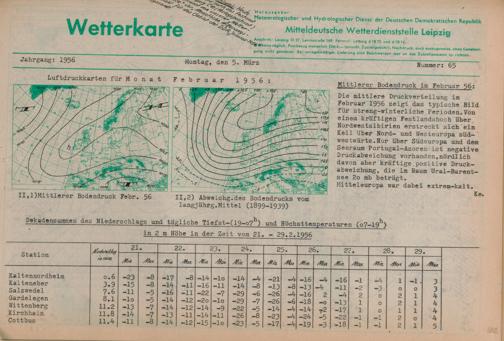 Täglicher Wetterbericht des Meteorologischen und Hydrologischen Dienstes der Deutschen...