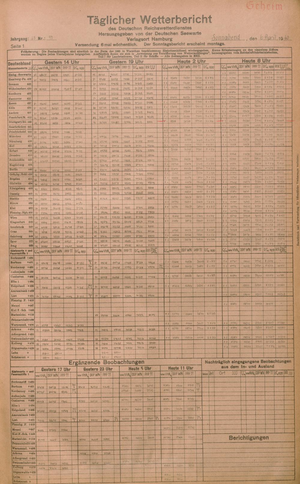 Täglicher Wetterbericht des deutschen Reichswetterdienstes