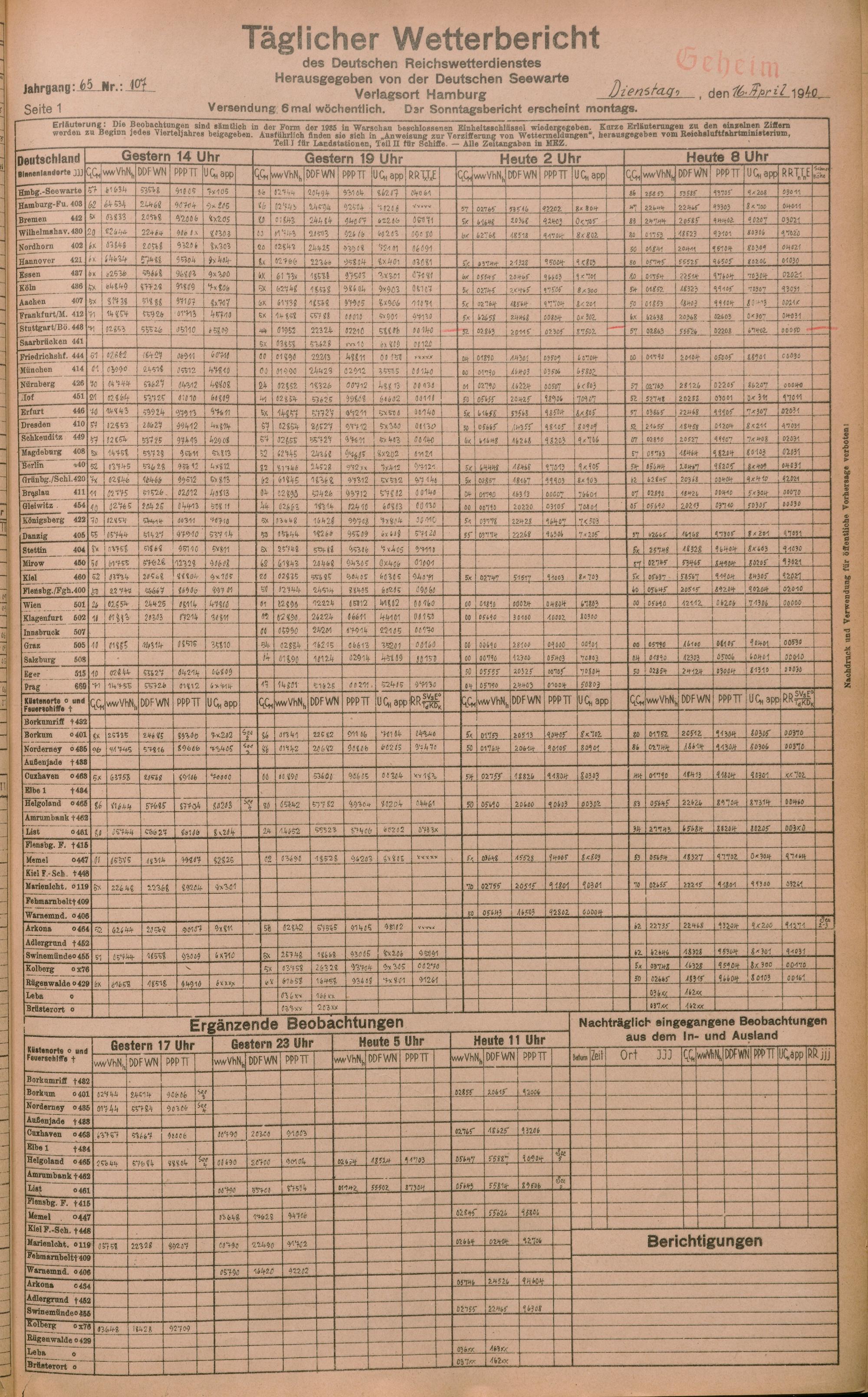 Täglicher Wetterbericht des deutschen Reichswetterdienstes