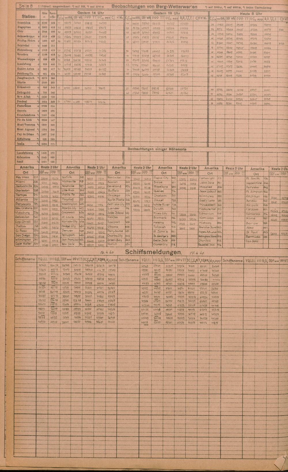 Täglicher Wetterbericht des deutschen Reichswetterdienstes