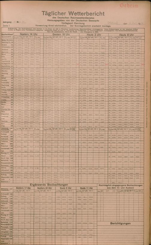 Täglicher Wetterbericht des deutschen Reichswetterdienstes