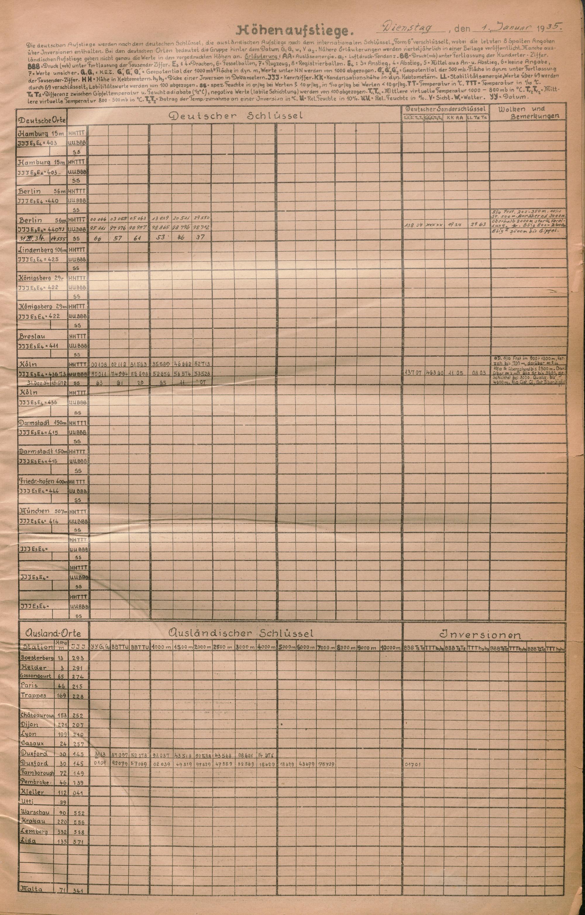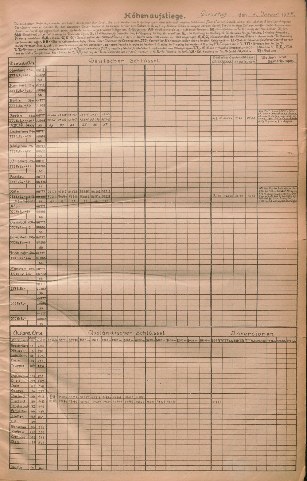 Täglicher Wetterbericht des deutschen Reichswetterdienstes