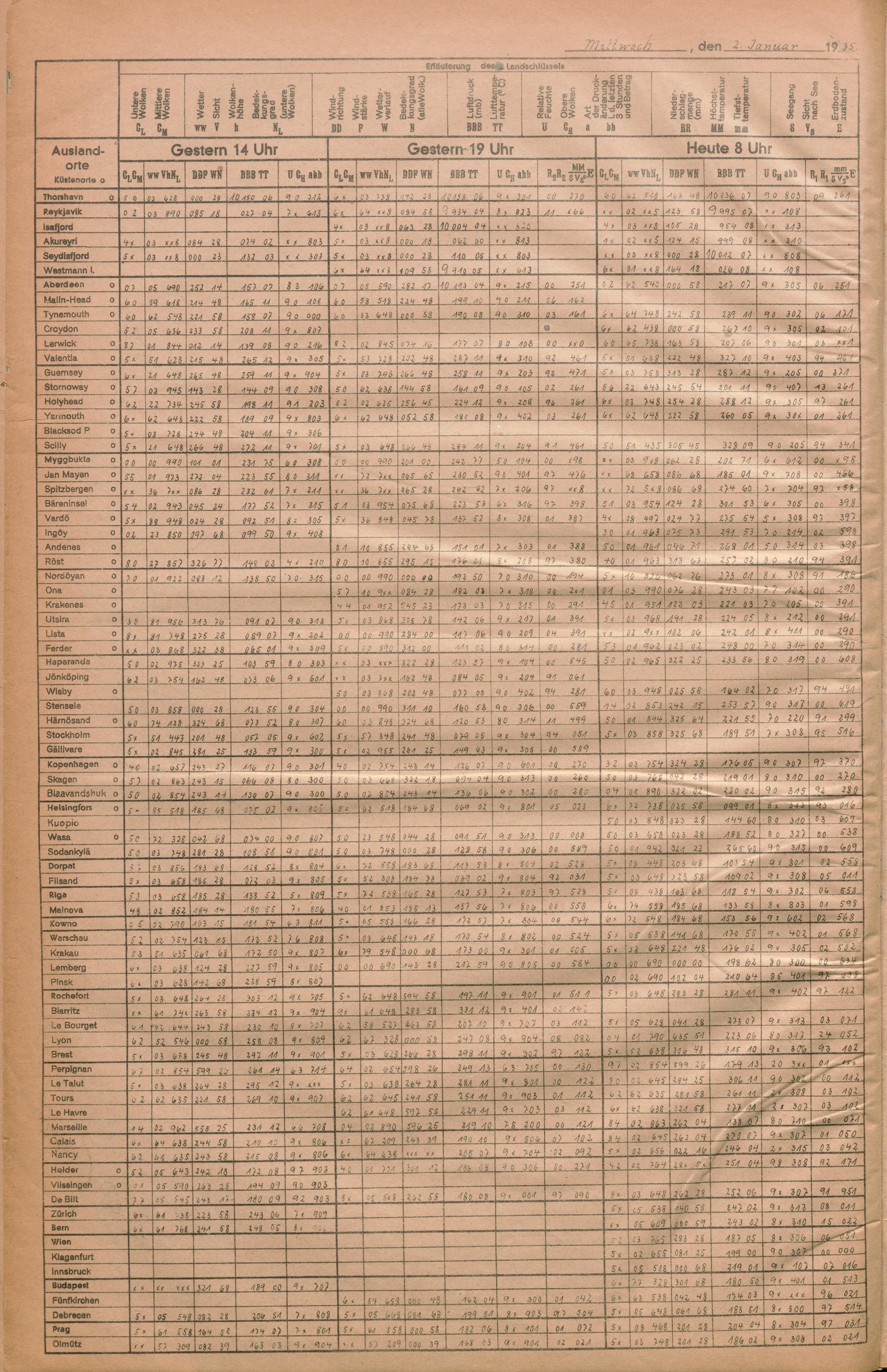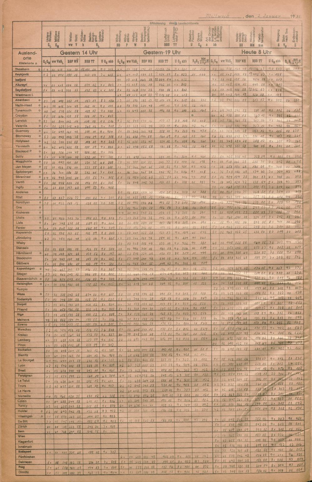 Täglicher Wetterbericht des deutschen Reichswetterdienstes