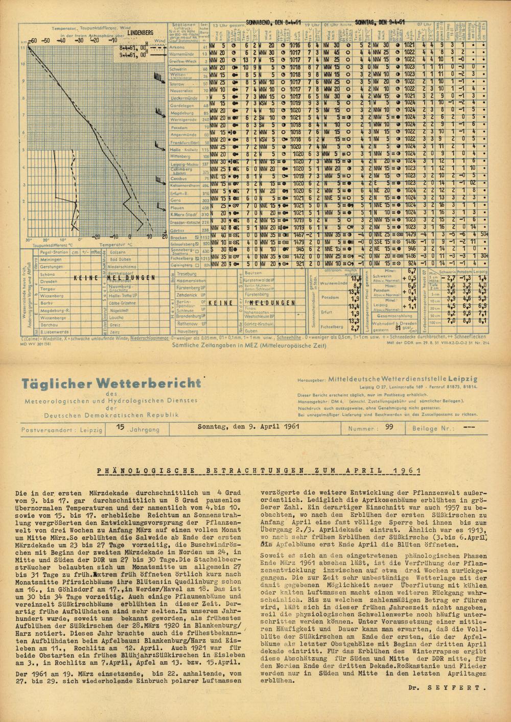 Täglicher Wetterbericht des Meteorologischen und Hydrologischen Dienstes der Deutschen...