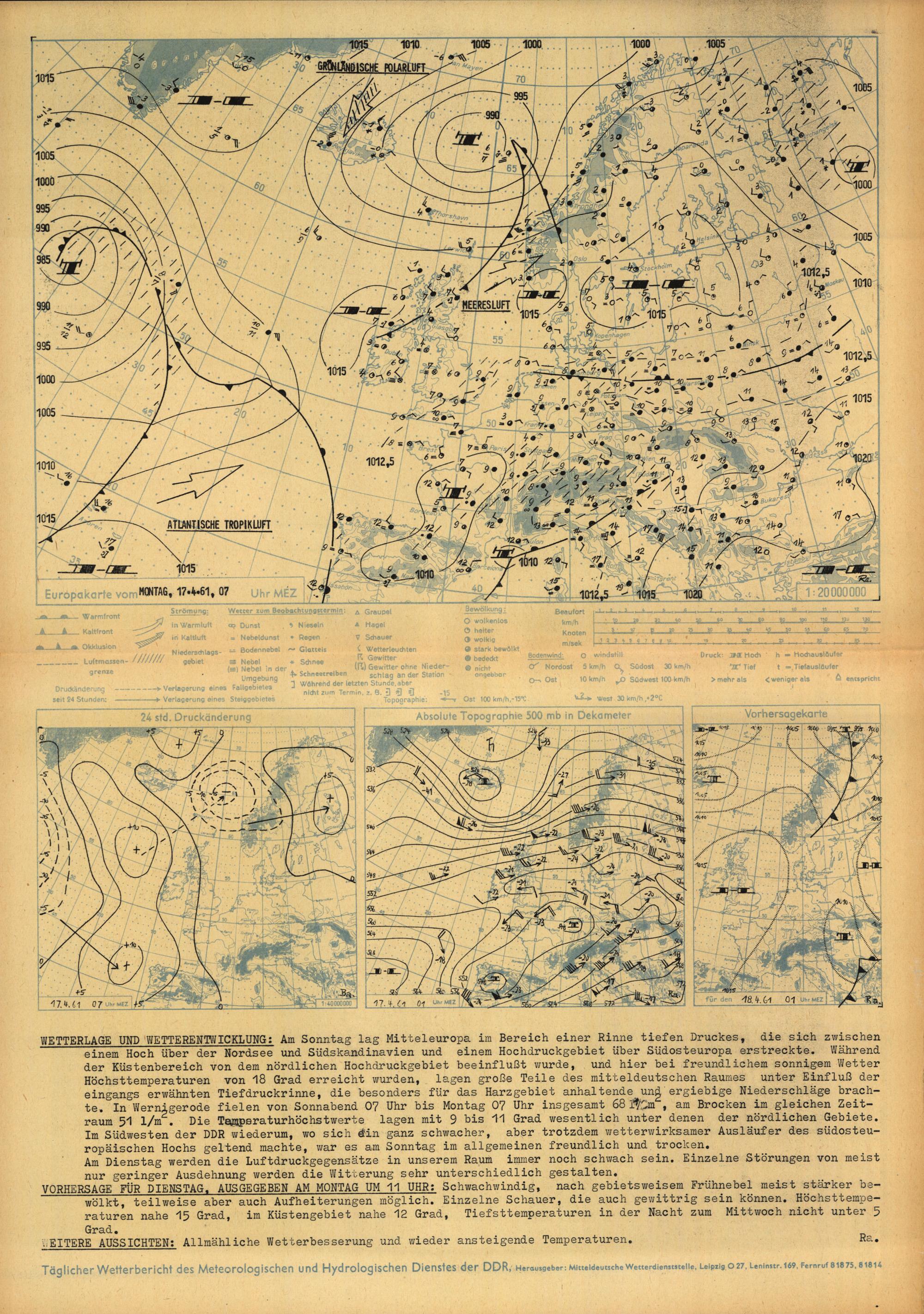Täglicher Wetterbericht des Meteorologischen und Hydrologischen Dienstes der Deutschen...