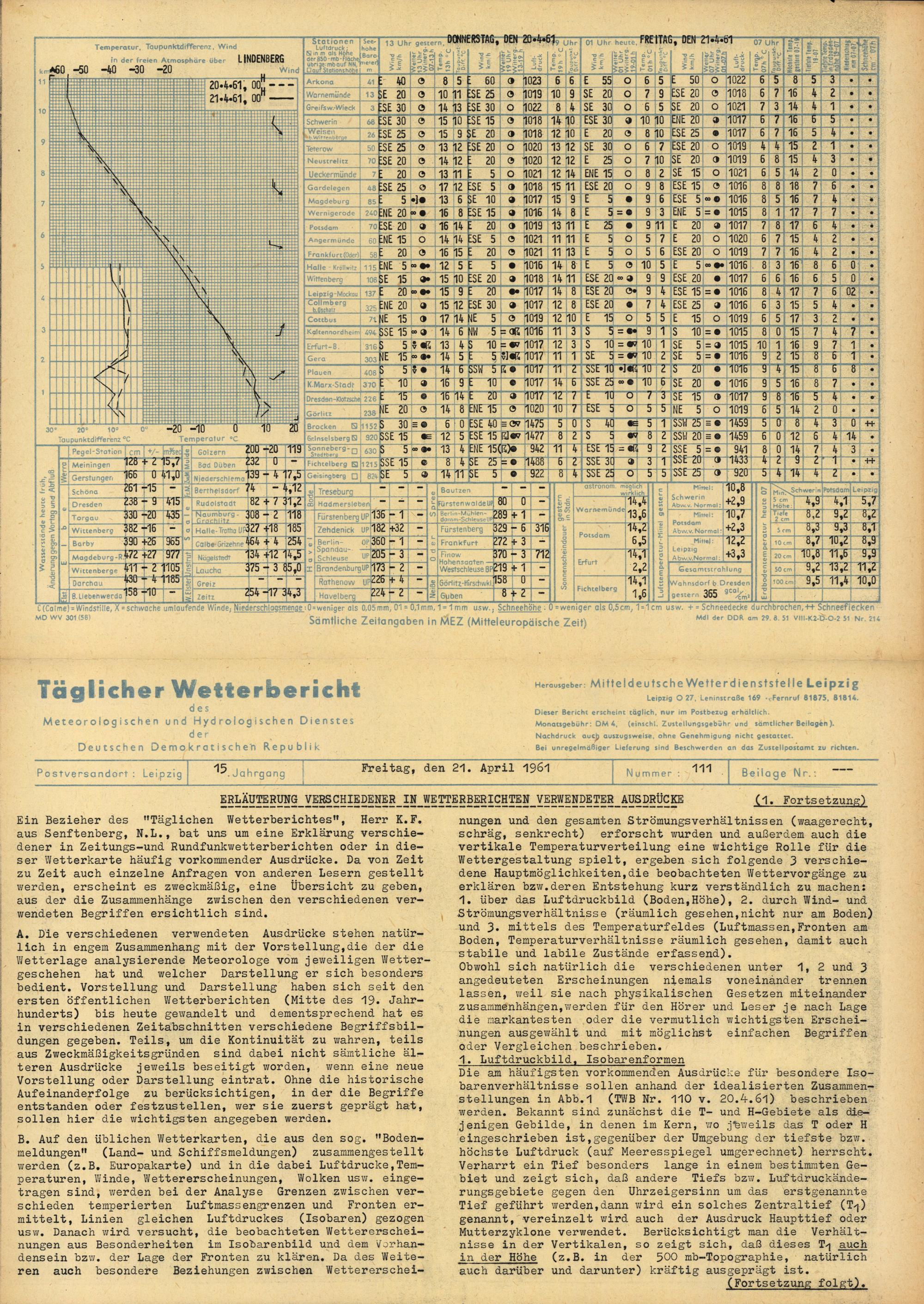 Täglicher Wetterbericht des Meteorologischen und Hydrologischen Dienstes der Deutschen...