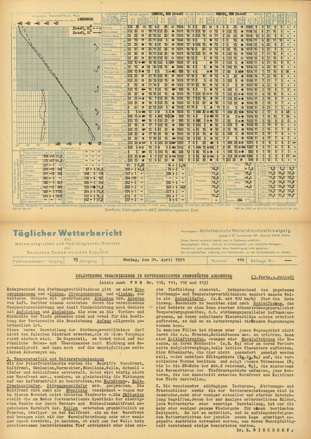 Täglicher Wetterbericht des Meteorologischen und Hydrologischen Dienstes der Deutschen...