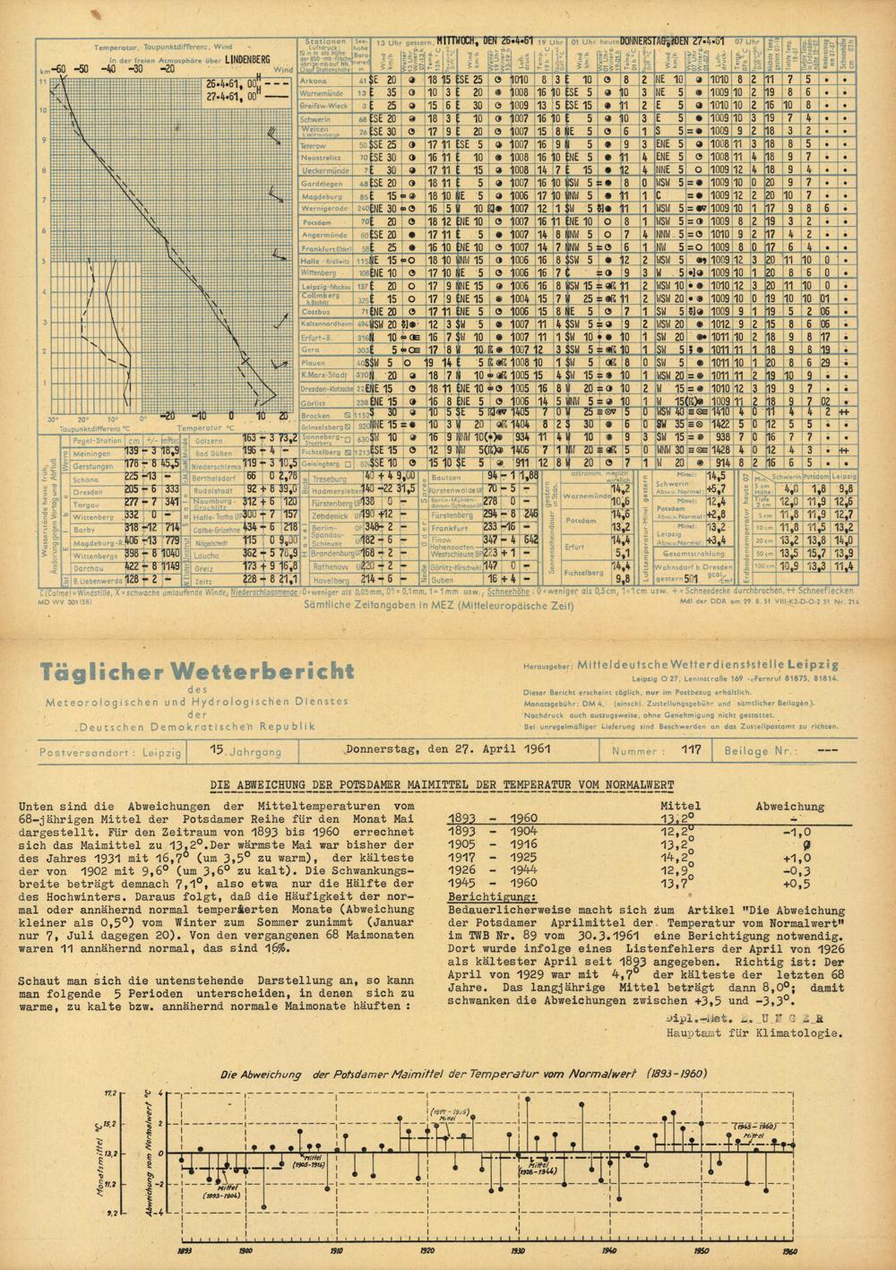 Täglicher Wetterbericht des Meteorologischen und Hydrologischen Dienstes der Deutschen...