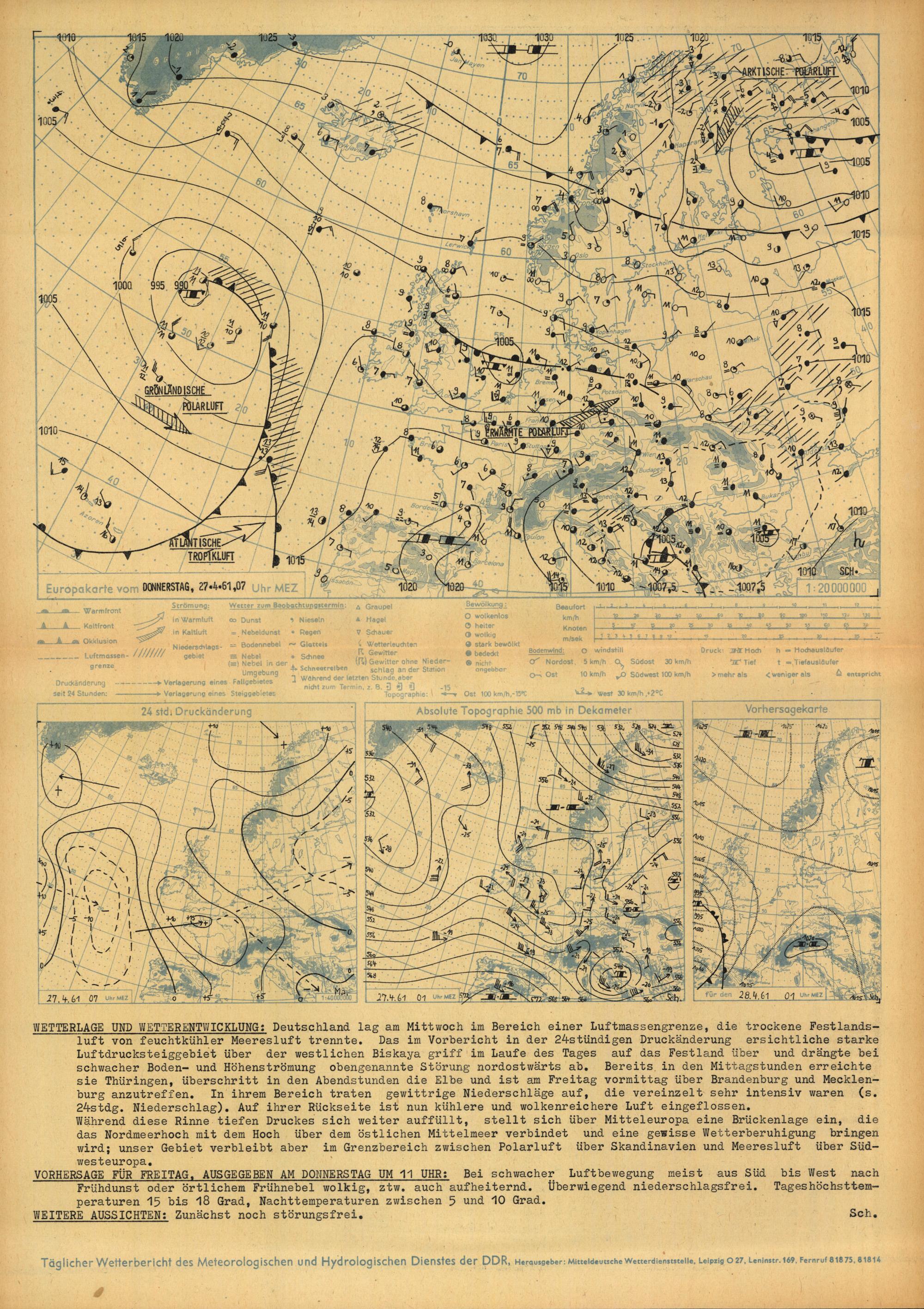 Täglicher Wetterbericht des Meteorologischen und Hydrologischen Dienstes der Deutschen...