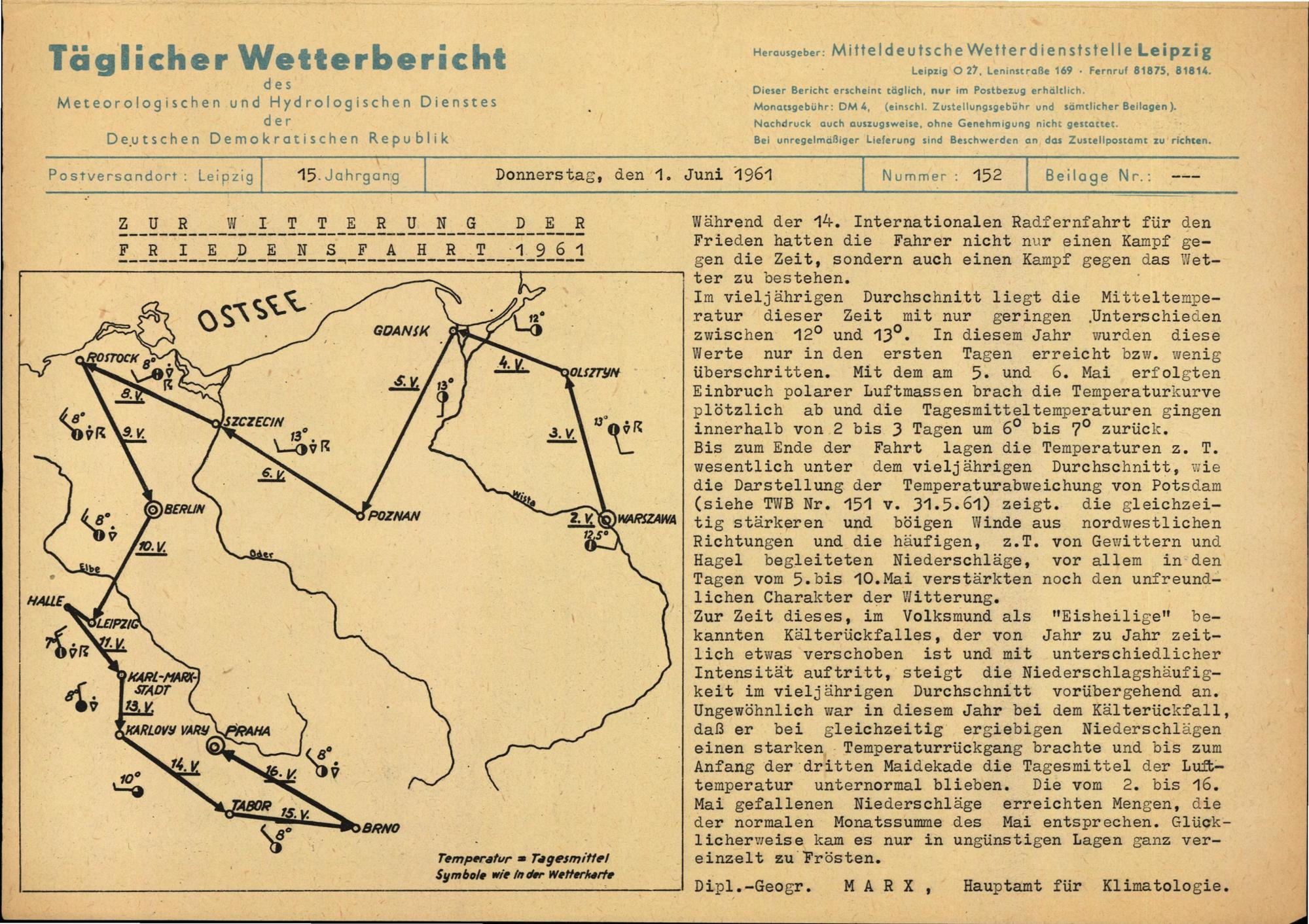 Täglicher Wetterbericht des Meteorologischen und Hydrologischen Dienstes der Deutschen...
