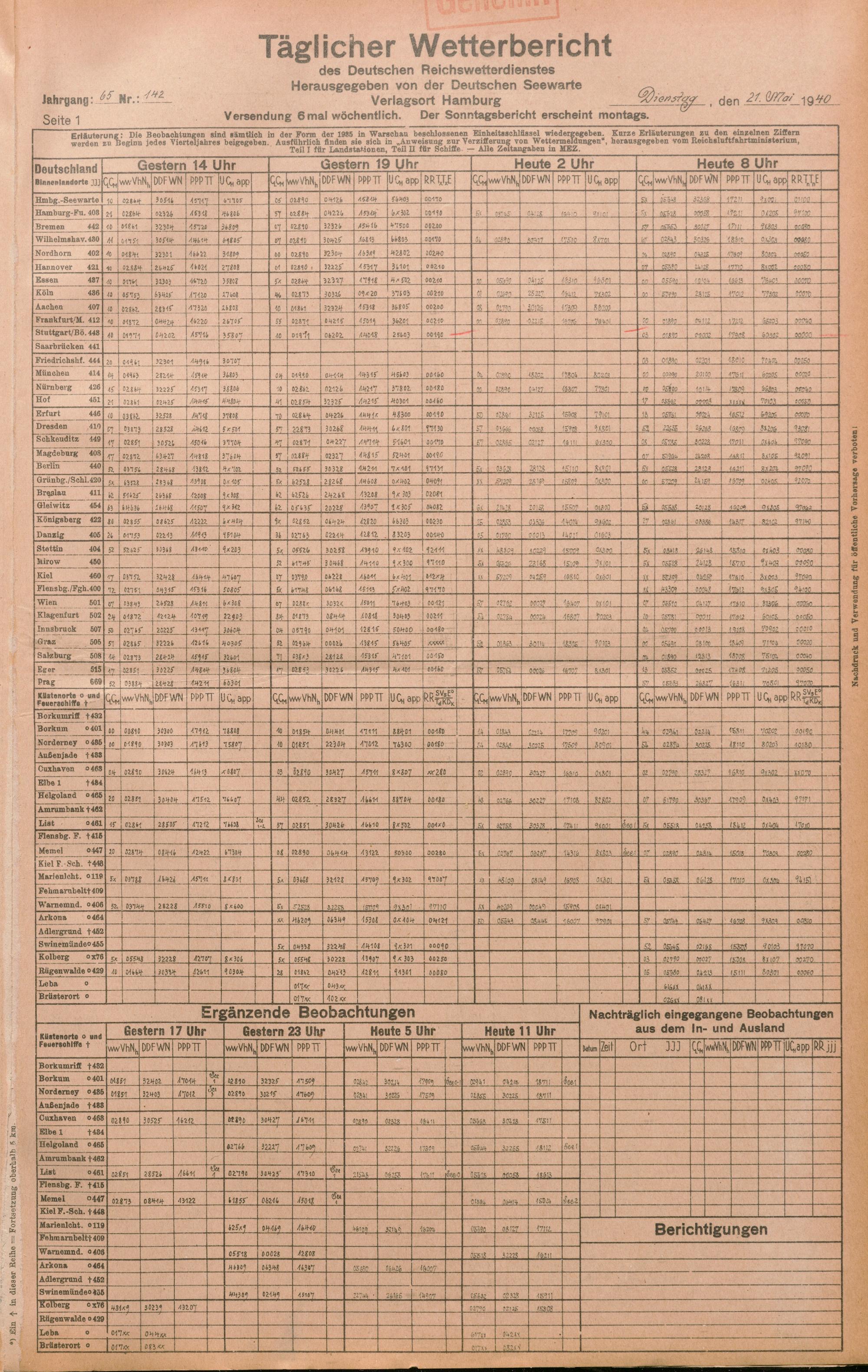 Täglicher Wetterbericht des deutschen Reichswetterdienstes