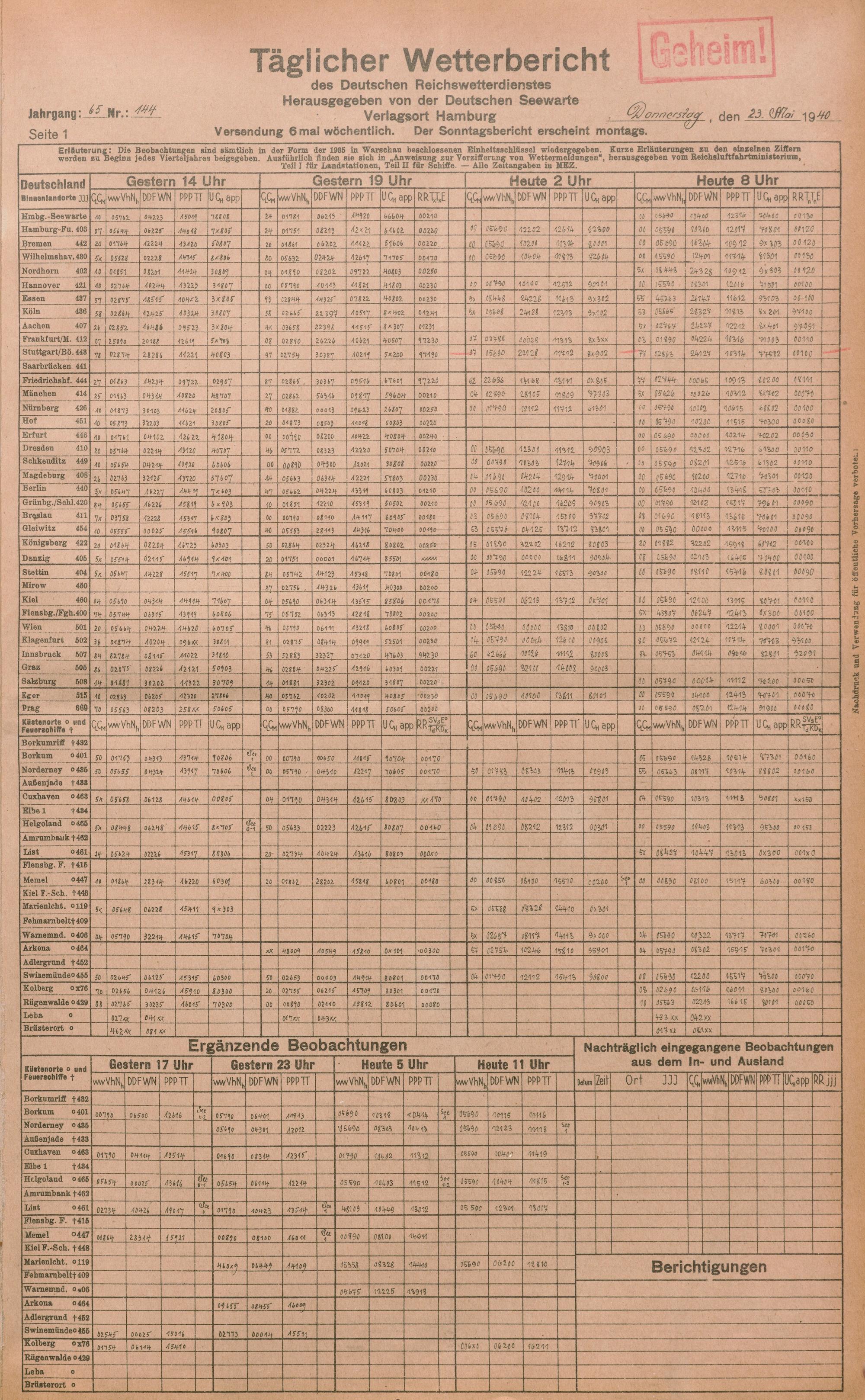 Täglicher Wetterbericht des deutschen Reichswetterdienstes