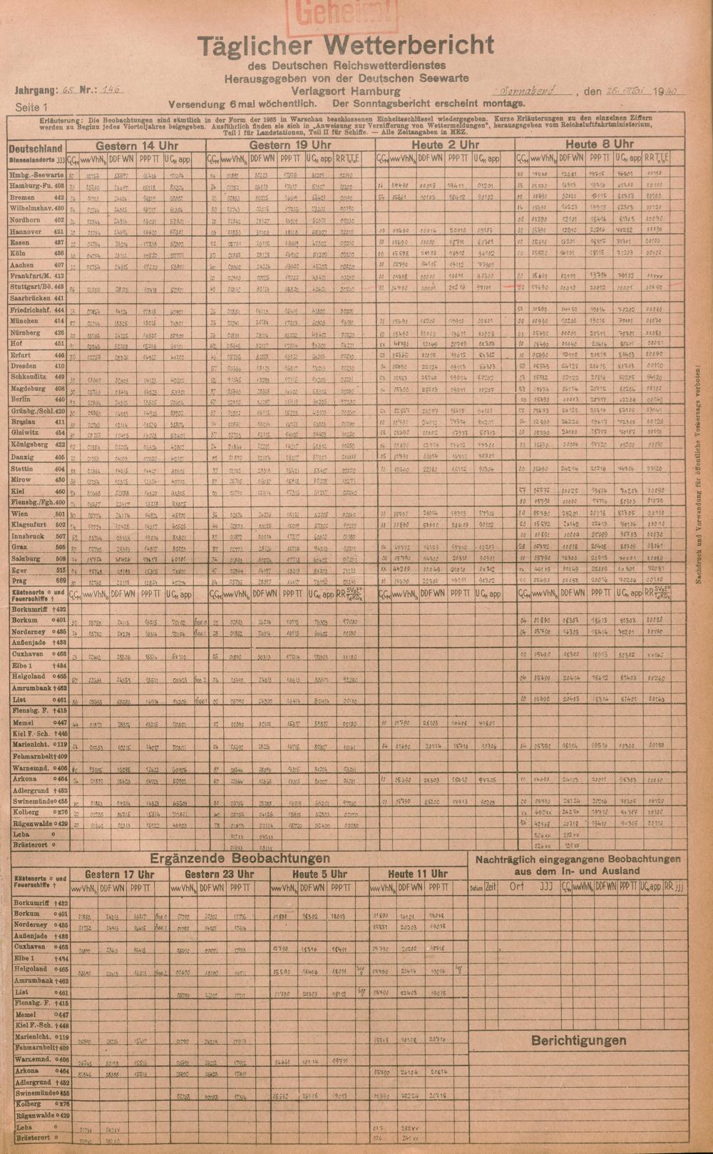 Täglicher Wetterbericht des deutschen Reichswetterdienstes