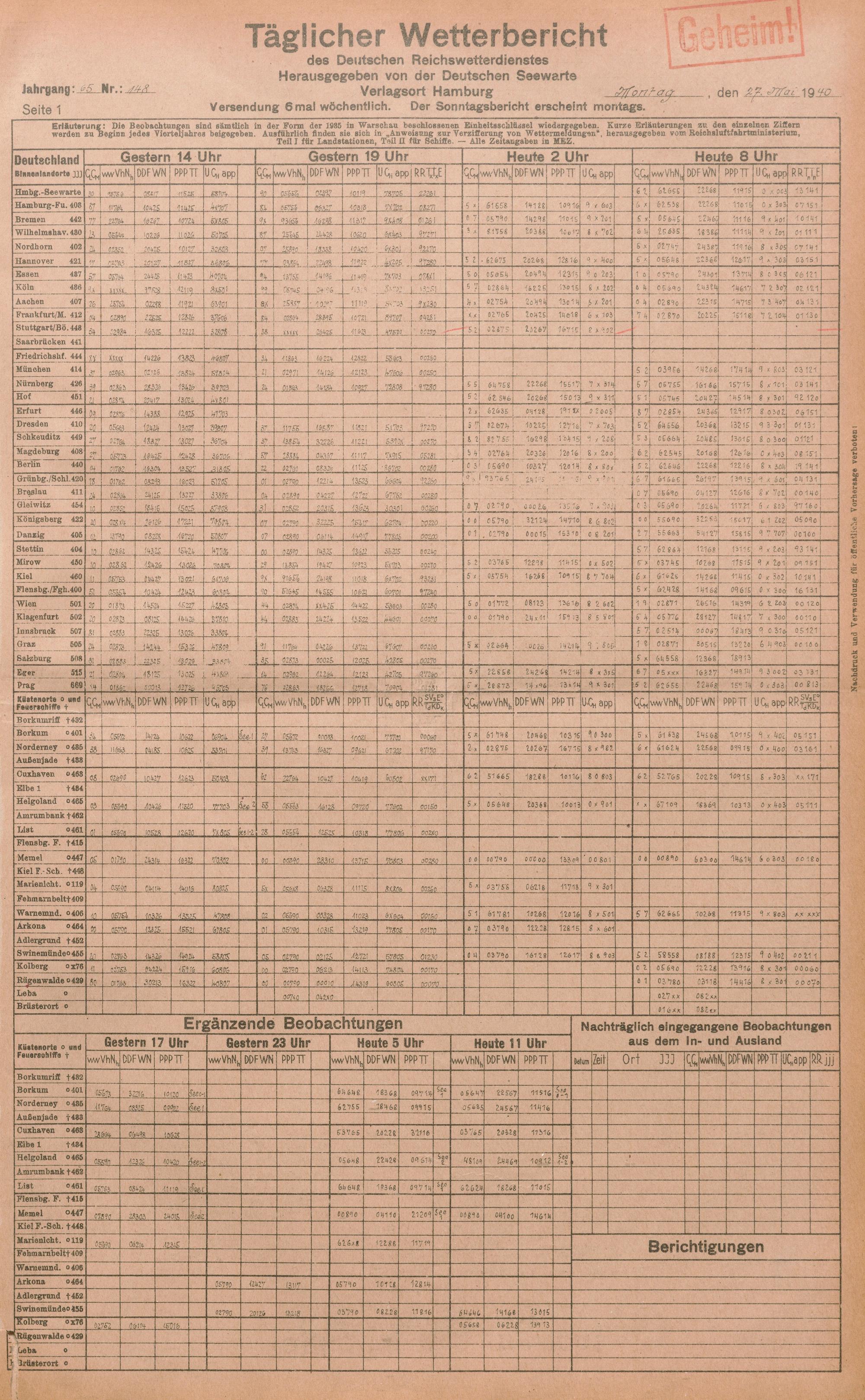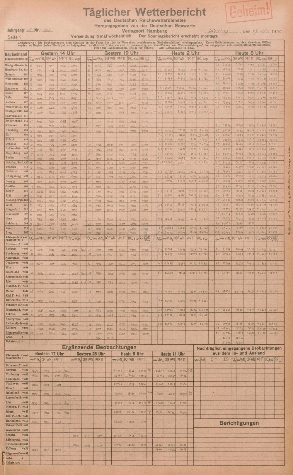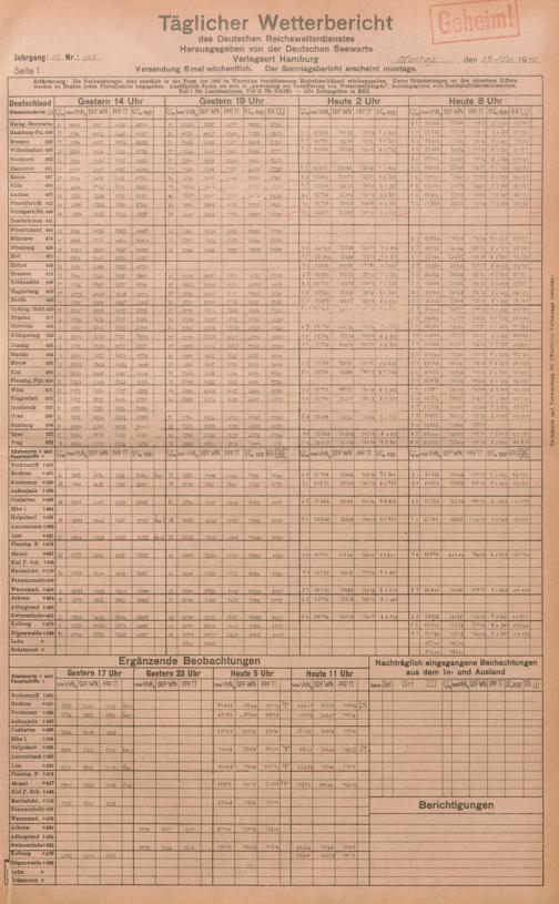 Täglicher Wetterbericht des deutschen Reichswetterdienstes