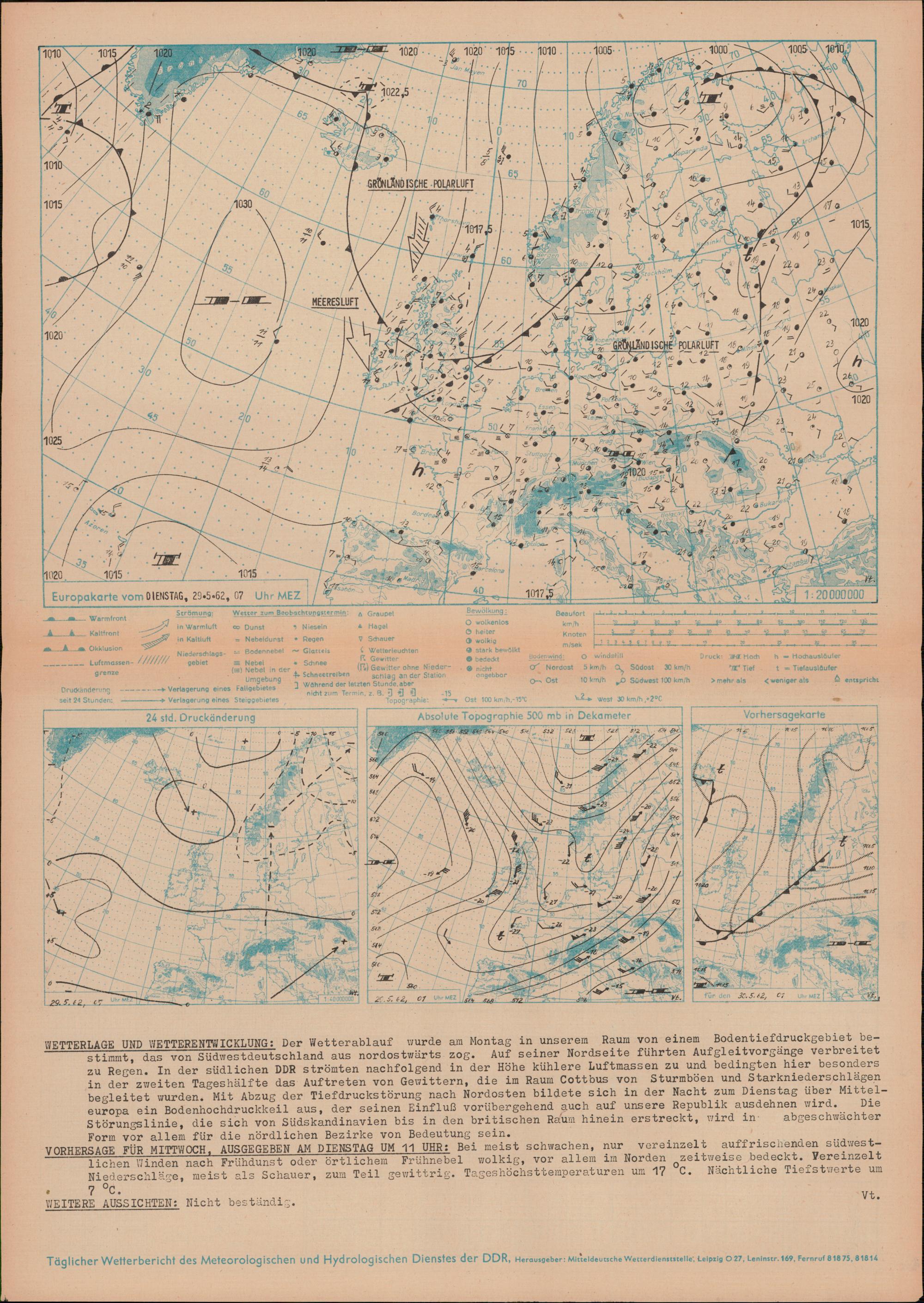 Täglicher Wetterbericht des Meteorologischen und Hydrologischen Dienstes der Deutschen...