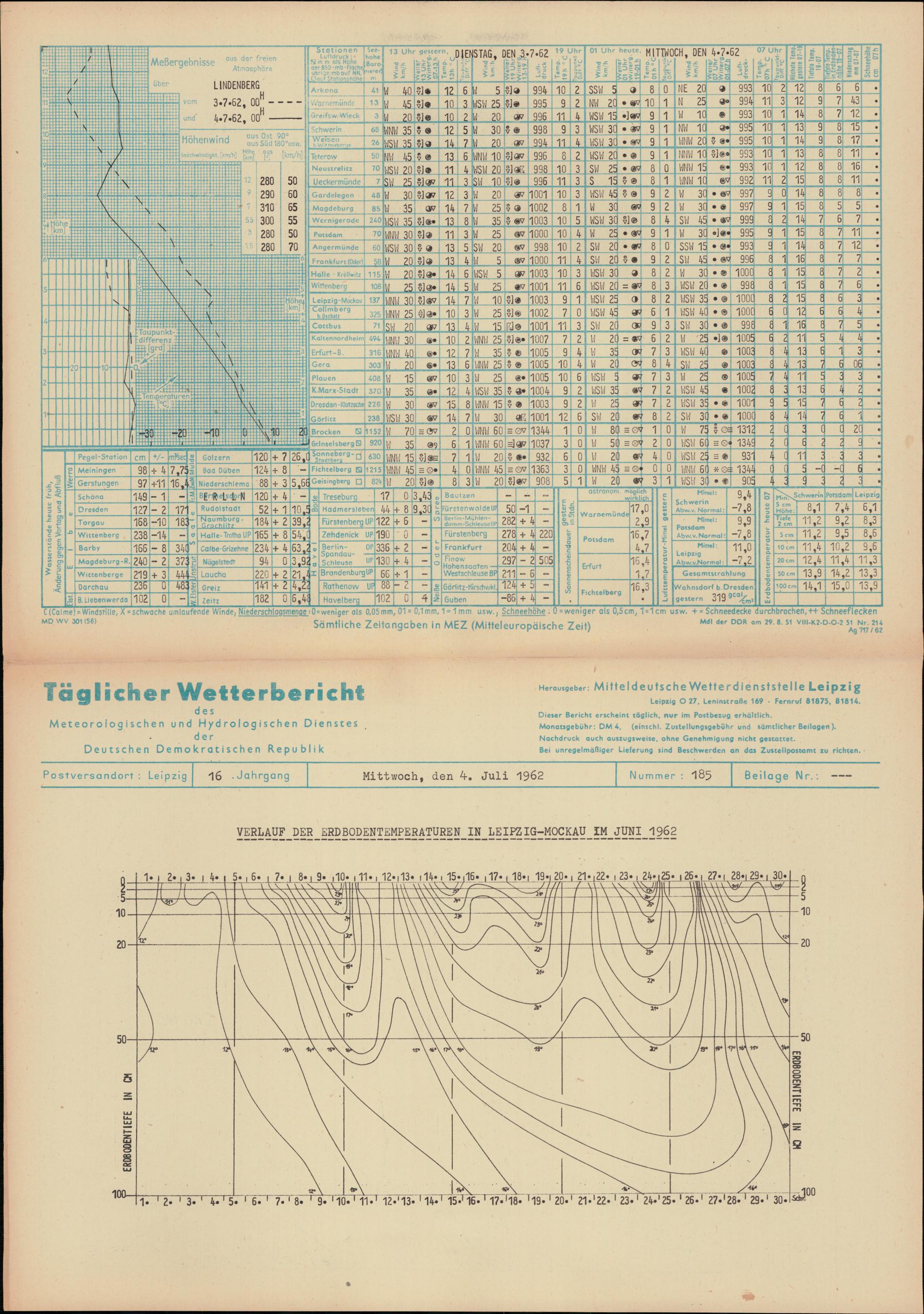 Täglicher Wetterbericht des Meteorologischen und Hydrologischen Dienstes der Deutschen...