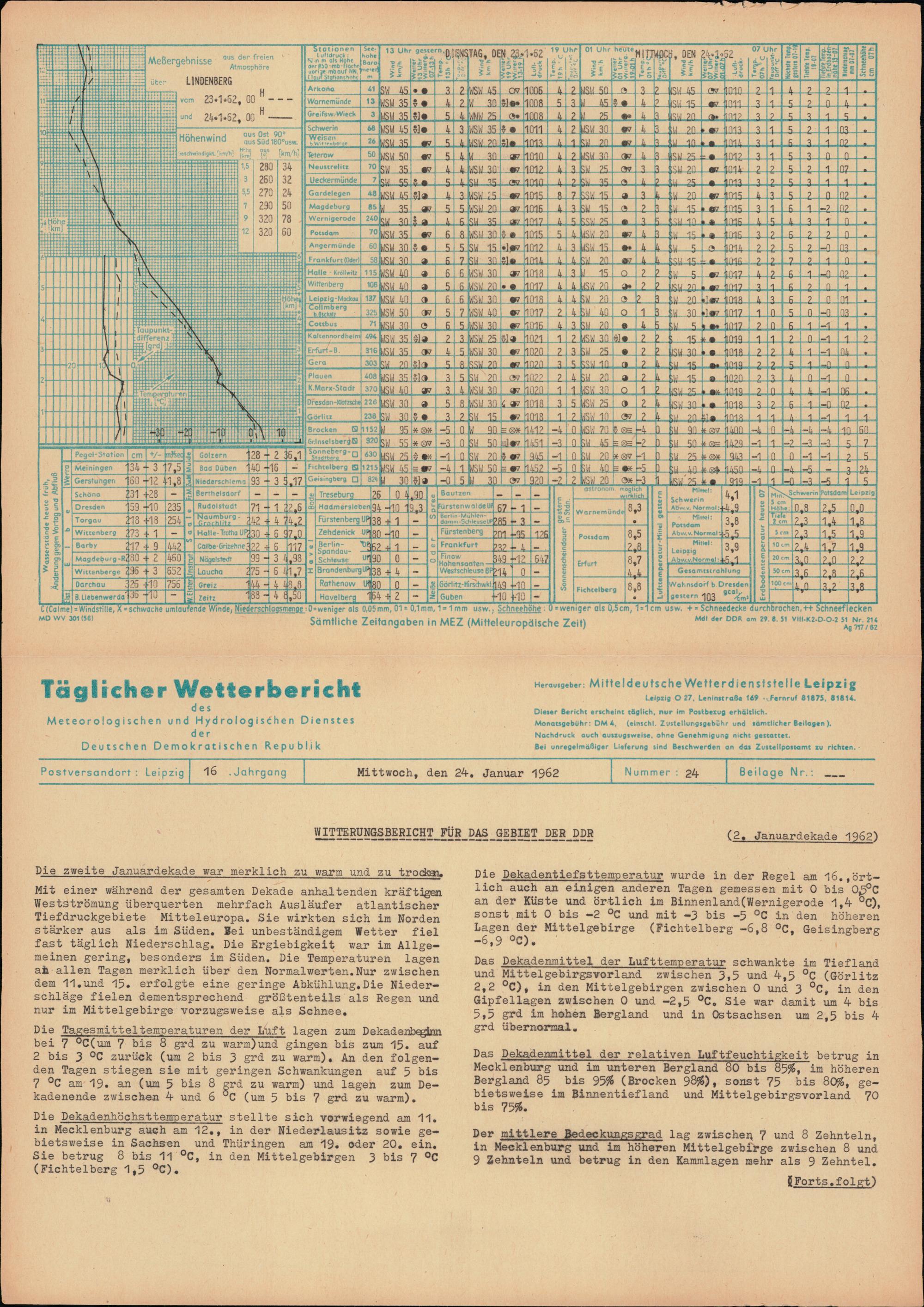Täglicher Wetterbericht des Meteorologischen und Hydrologischen Dienstes der Deutschen...