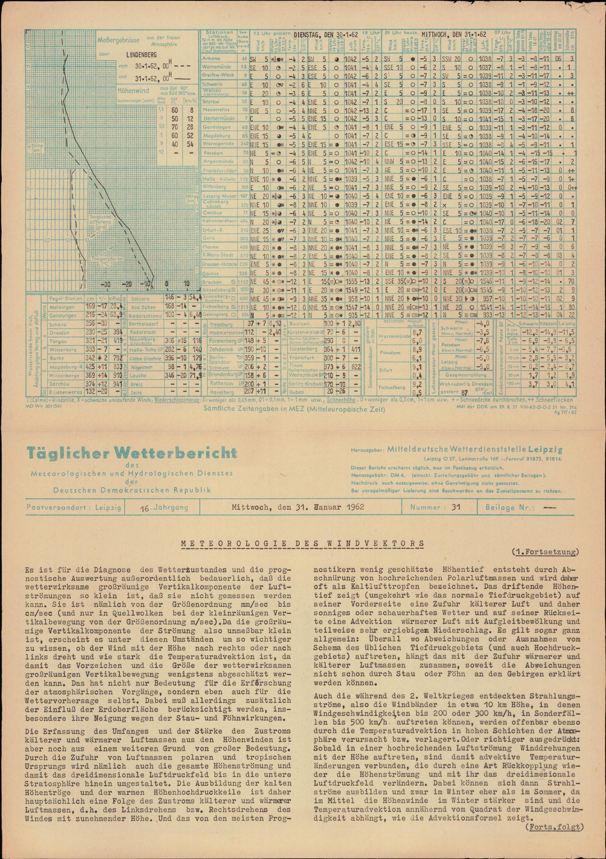 Täglicher Wetterbericht des Meteorologischen und Hydrologischen Dienstes der Deutschen...