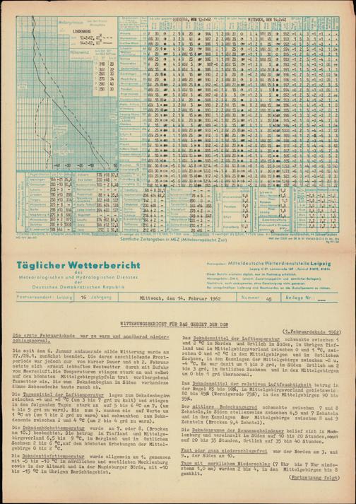 Täglicher Wetterbericht des Meteorologischen und Hydrologischen Dienstes der Deutschen...
