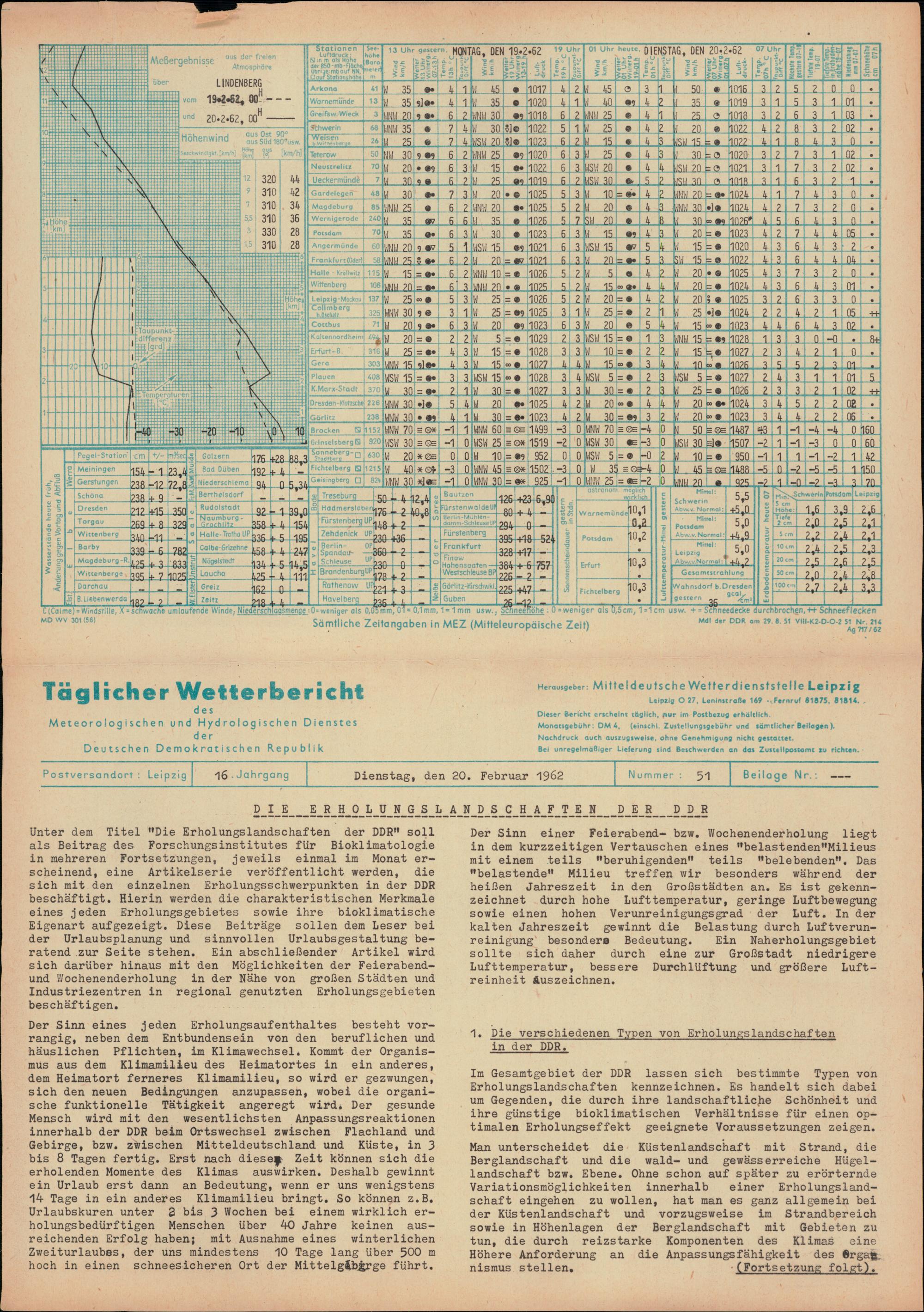 Täglicher Wetterbericht des Meteorologischen und Hydrologischen Dienstes der Deutschen...