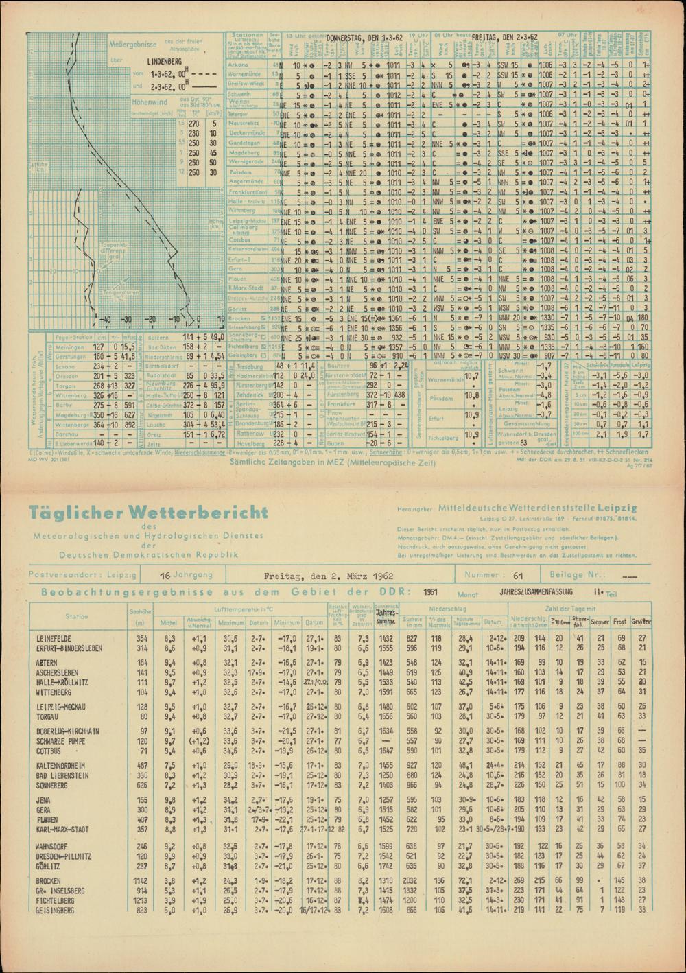 Täglicher Wetterbericht des Meteorologischen und Hydrologischen Dienstes der Deutschen...