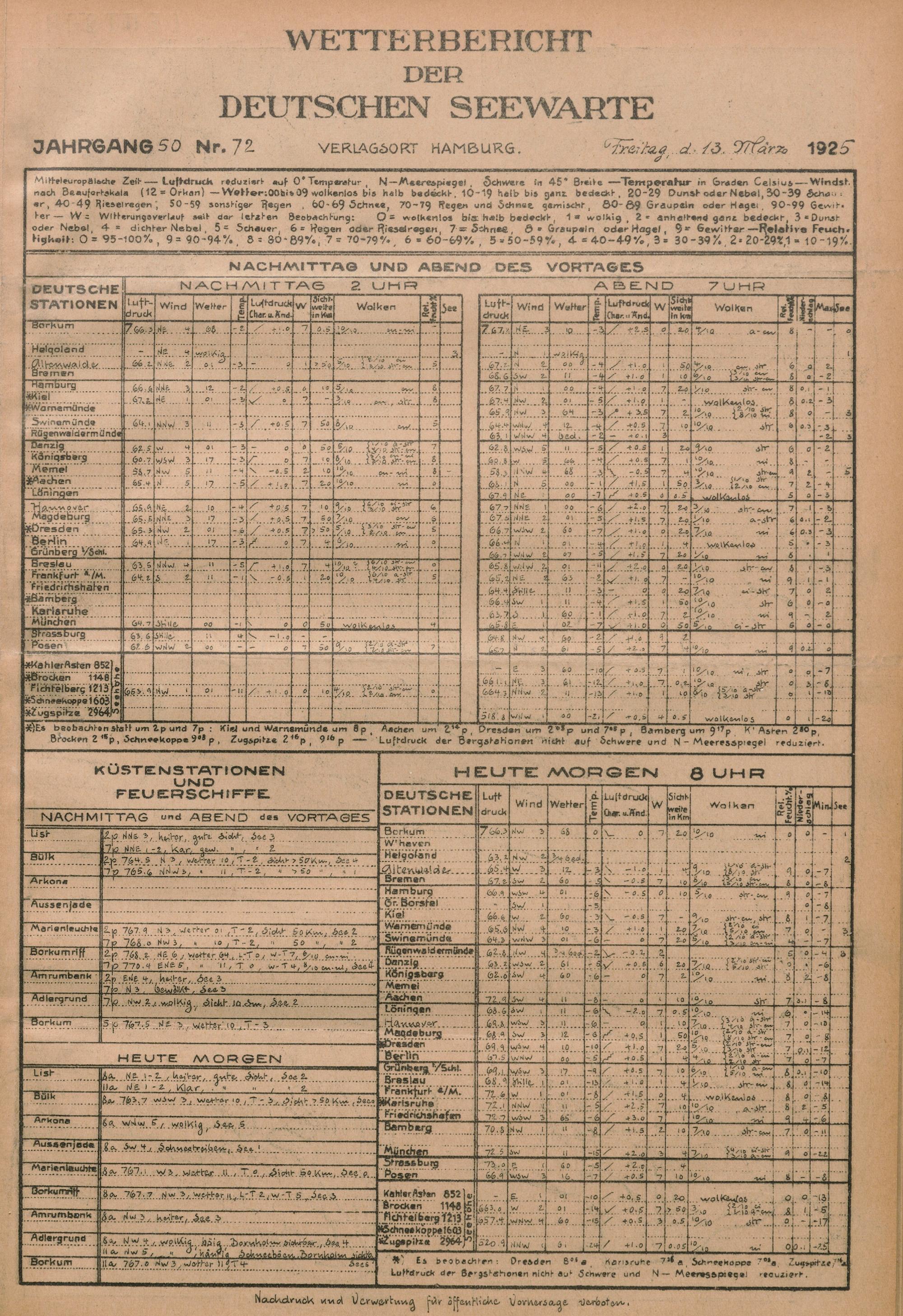 Wetterbericht der Deutschen Seewarte