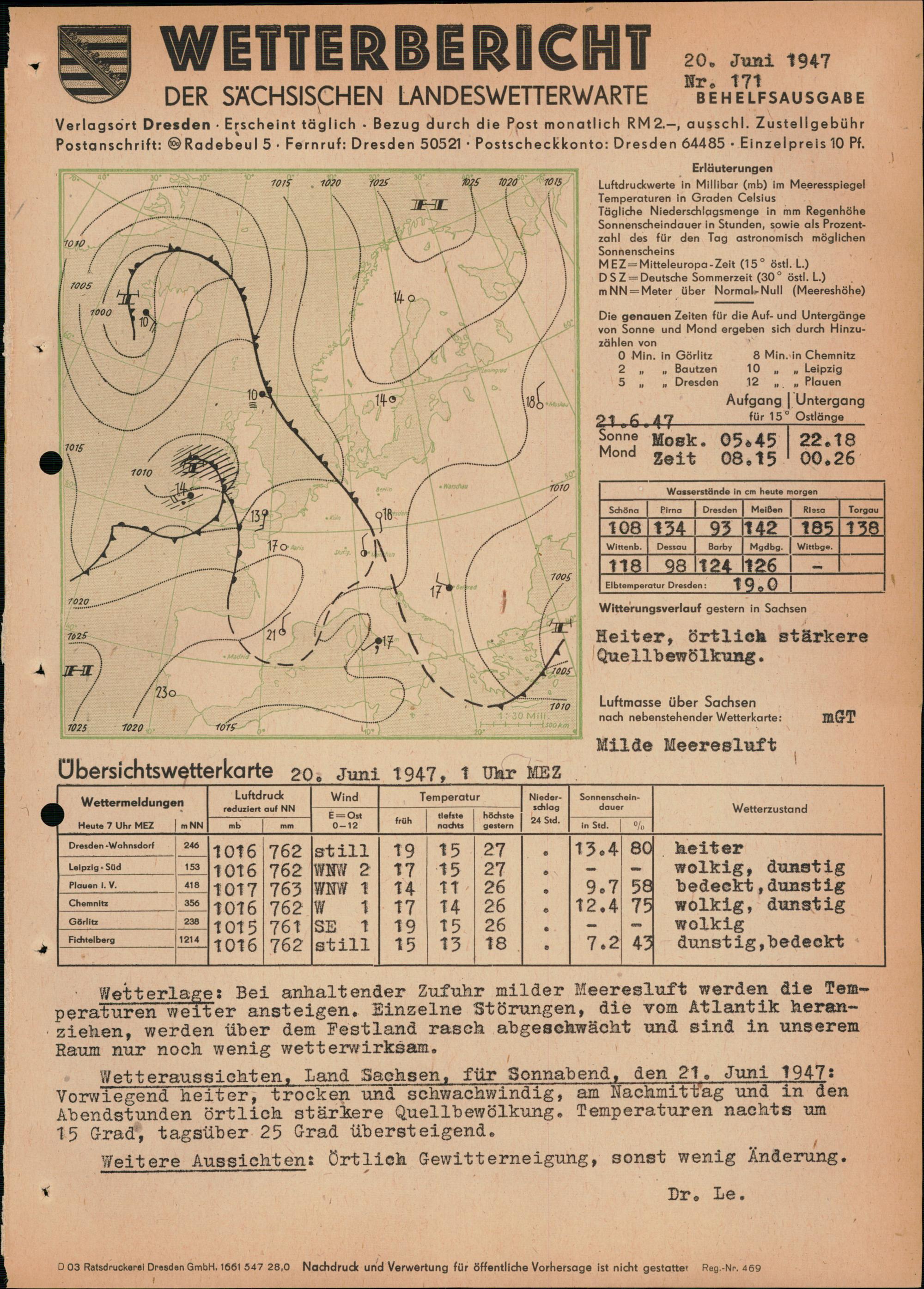 Wetterbericht der Sächsischen Landeswetterwarte