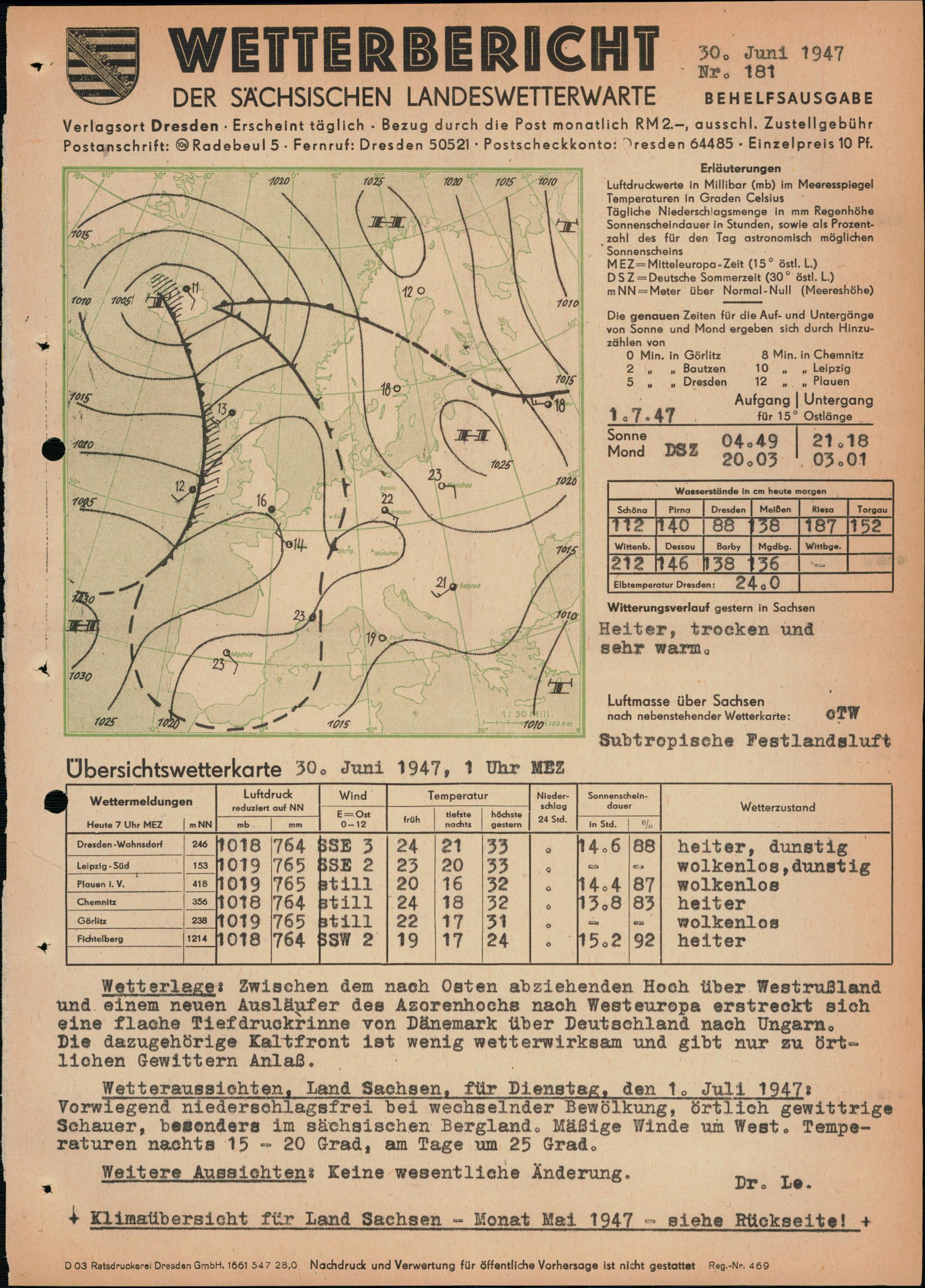 Wetterbericht der Sächsischen Landeswetterwarte